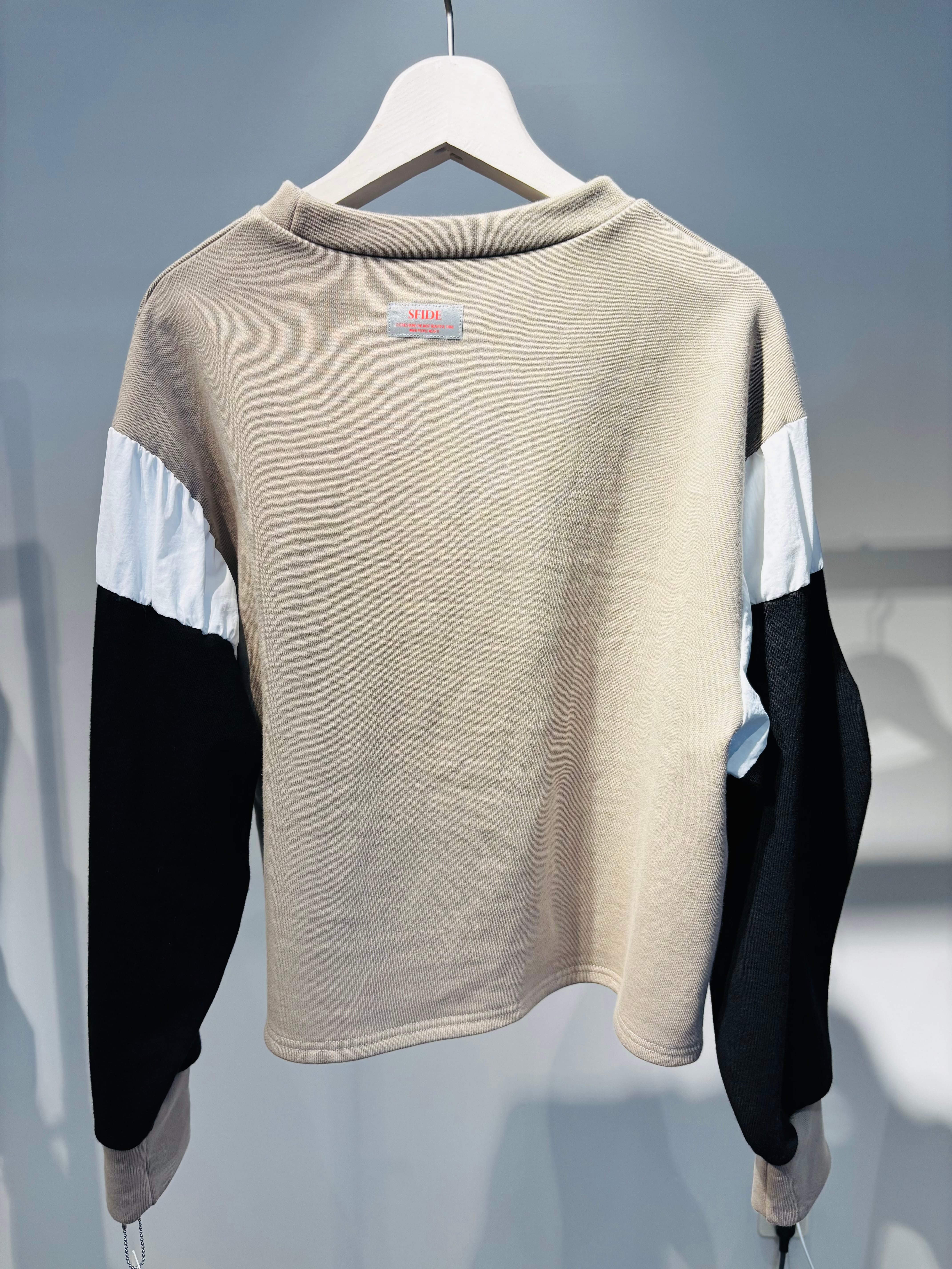 ◆立体感のある袖のギャザーや配色がポイントのプルオーバーです