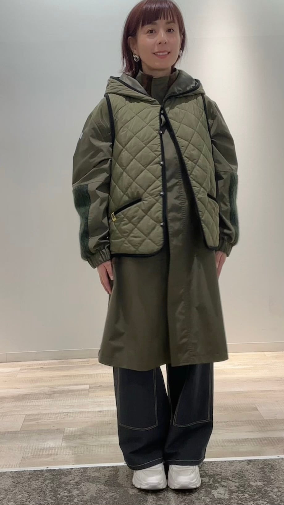 フード付きでカジュアルなムードを持ちながら、異素材の組み合わせが大人っぽさをプラス。秋口のライトアウターとしてはもちろん、冬はコートのインナーに重ねることでレイヤードスタイルも楽しめます。