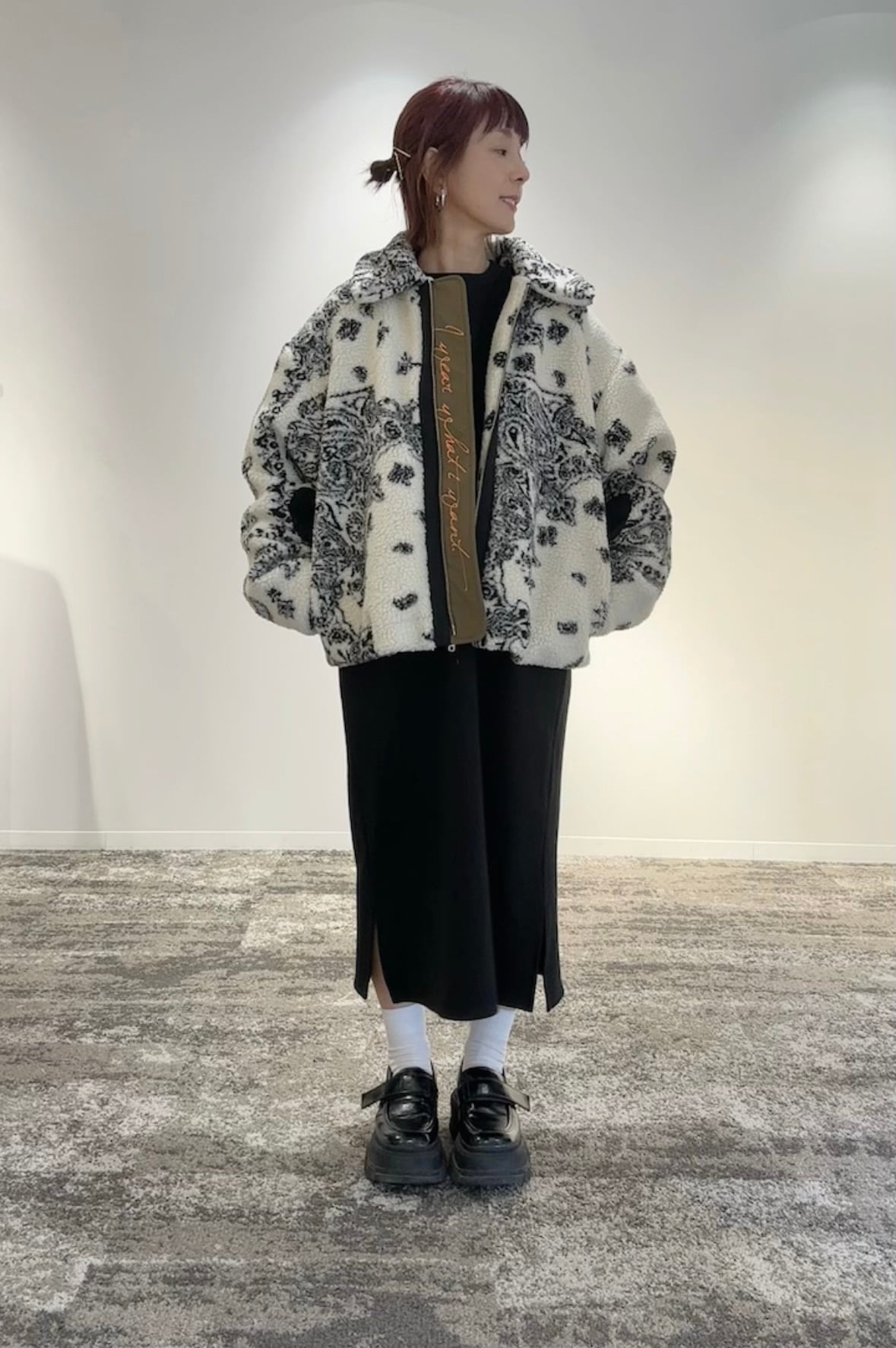◆ペイズリー柄が印象的で軽やかな着心地のボアブルゾンです!フロントはダブルジップ仕様で、スタイリッシュさを演出しつつ、着脱も簡単です。