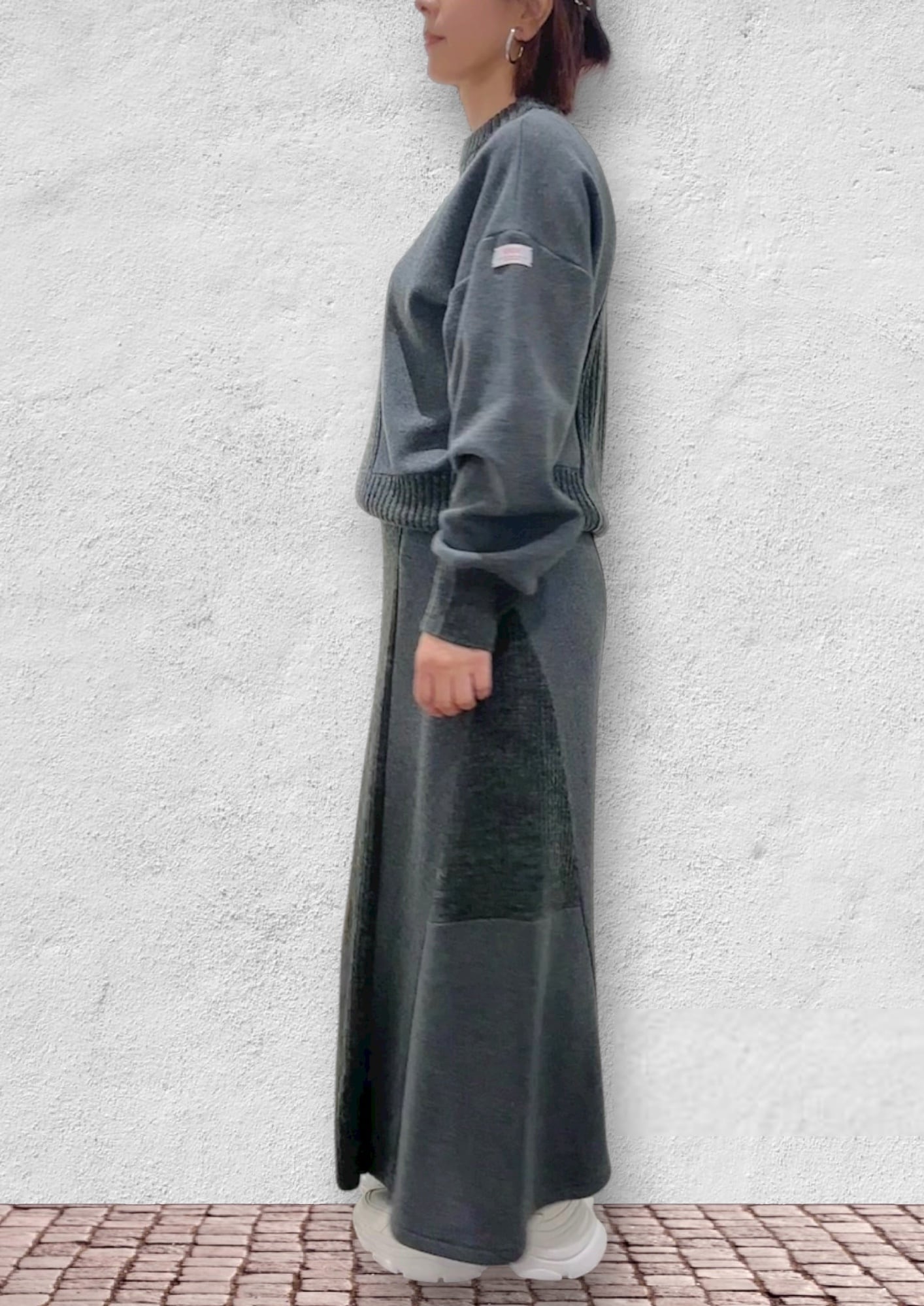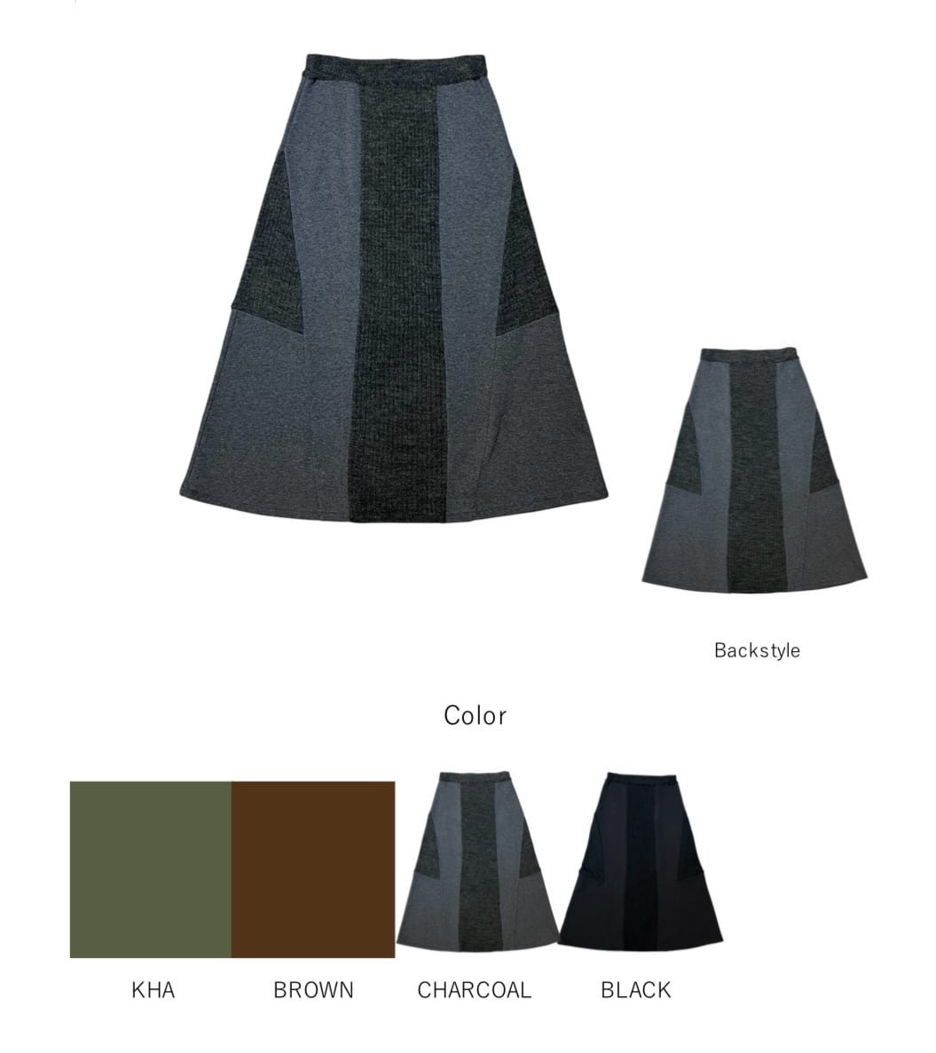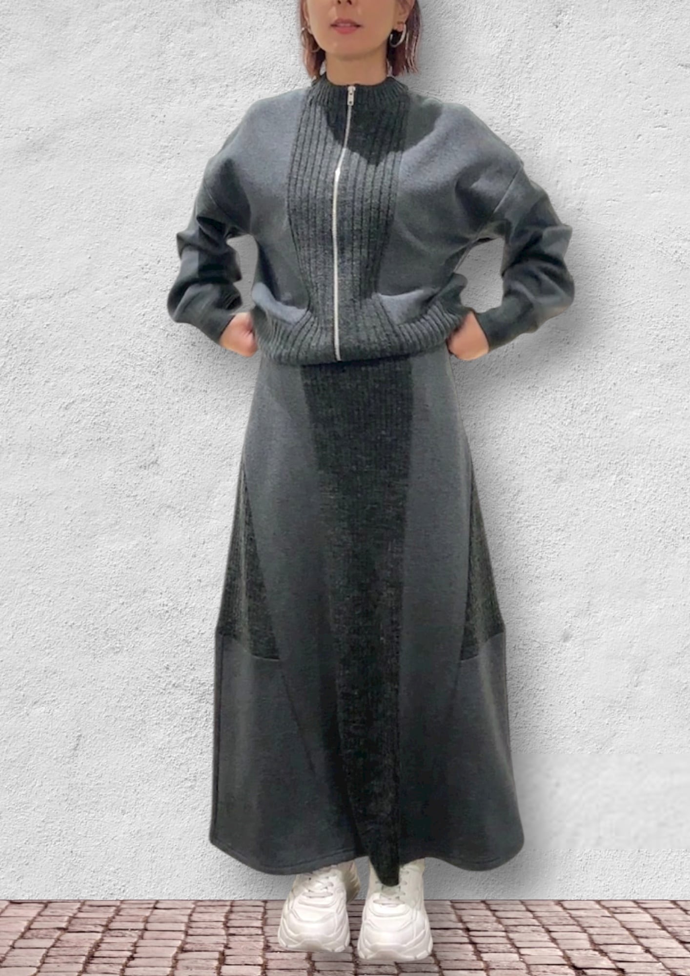 フロントとサイドに入ったニット調の切替ラインが縦のラインを強調し、すっきりとしたシルエットを演出。