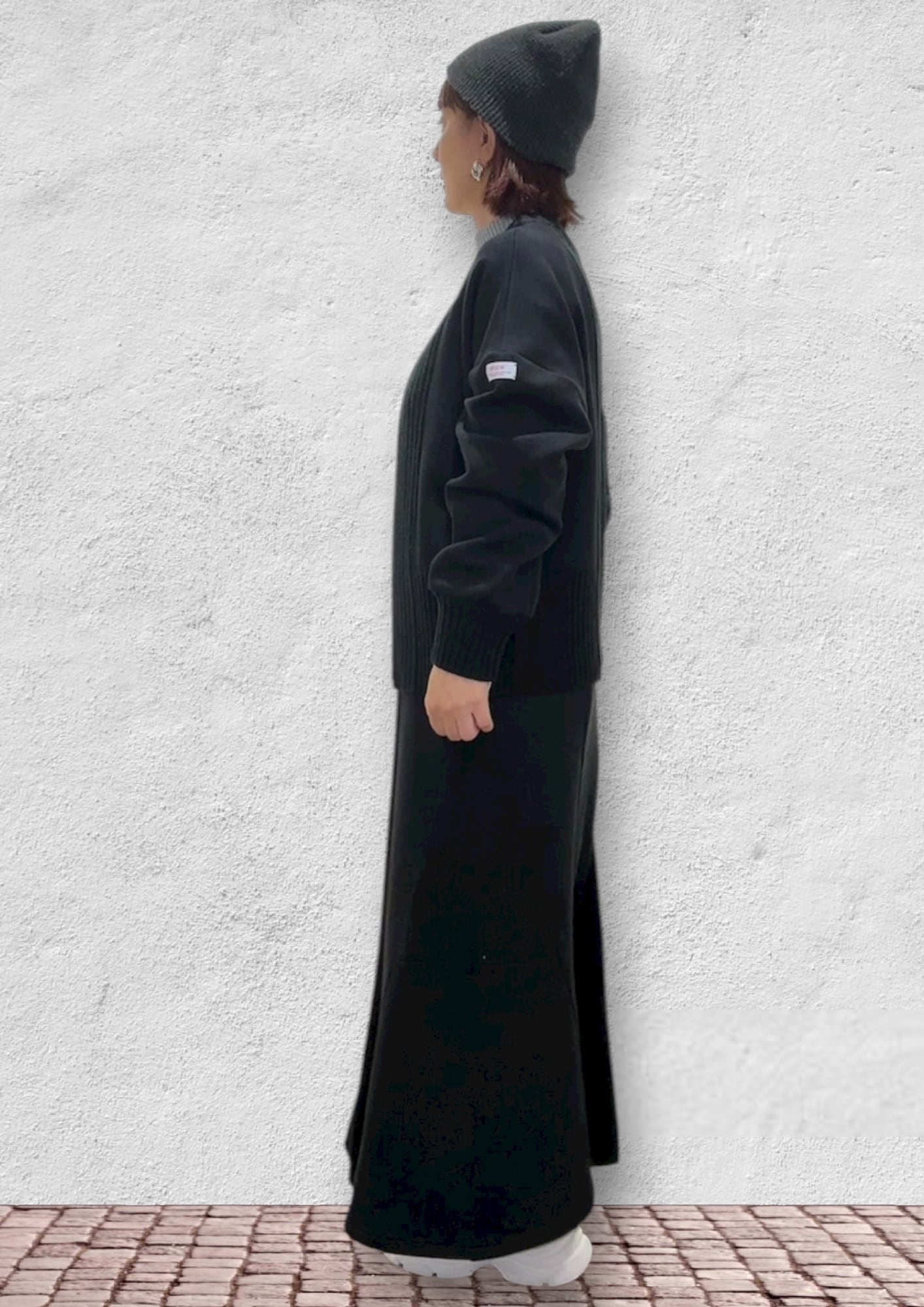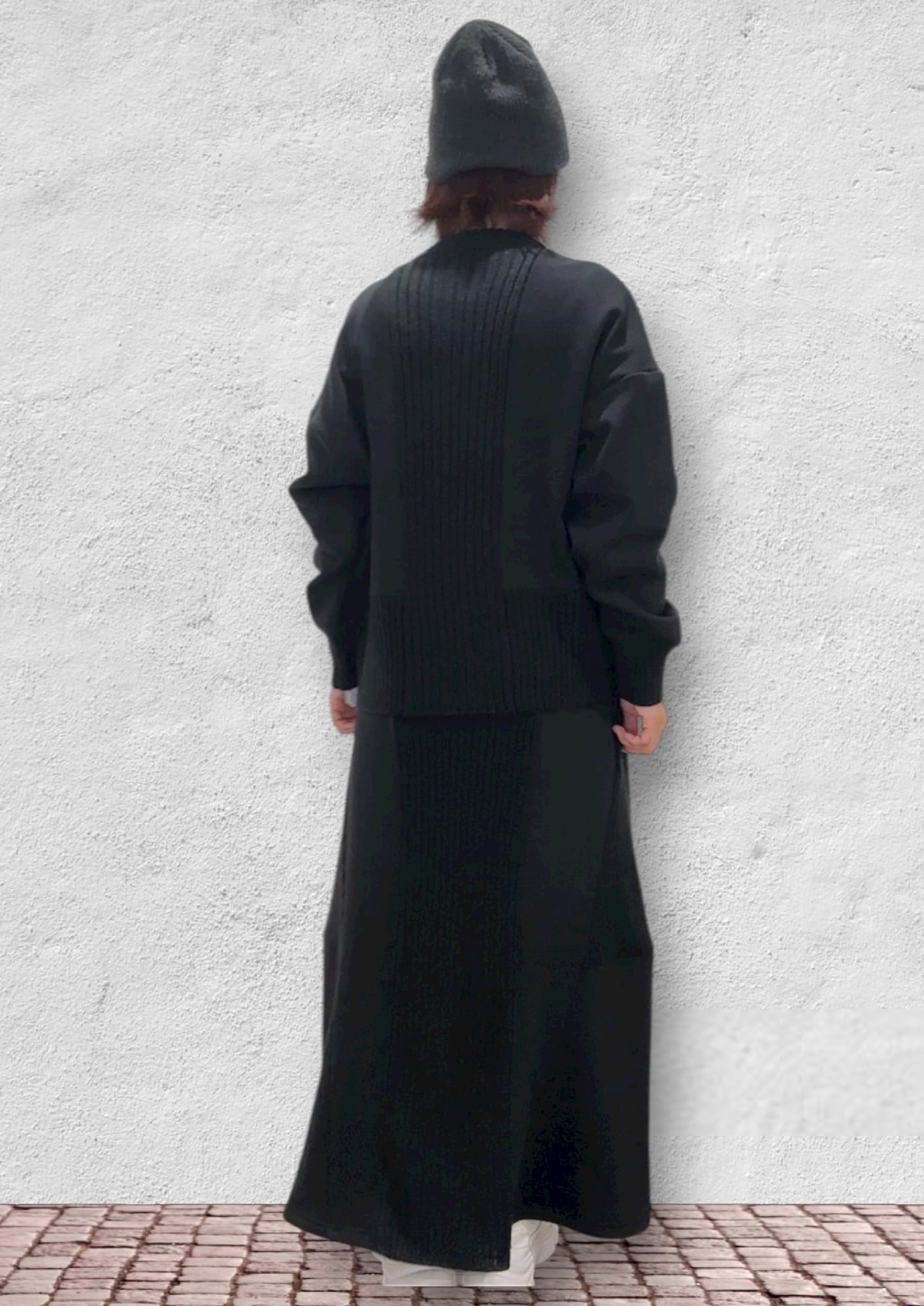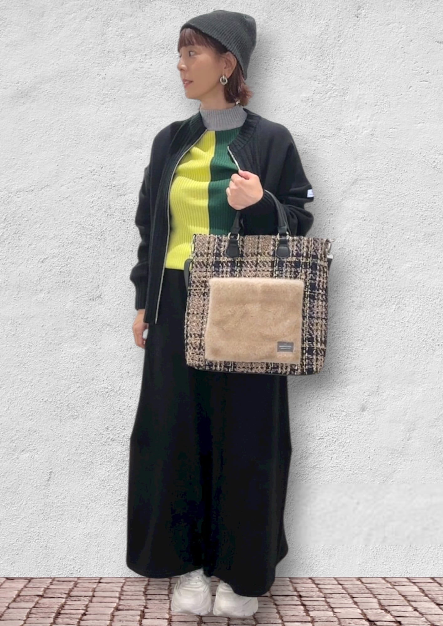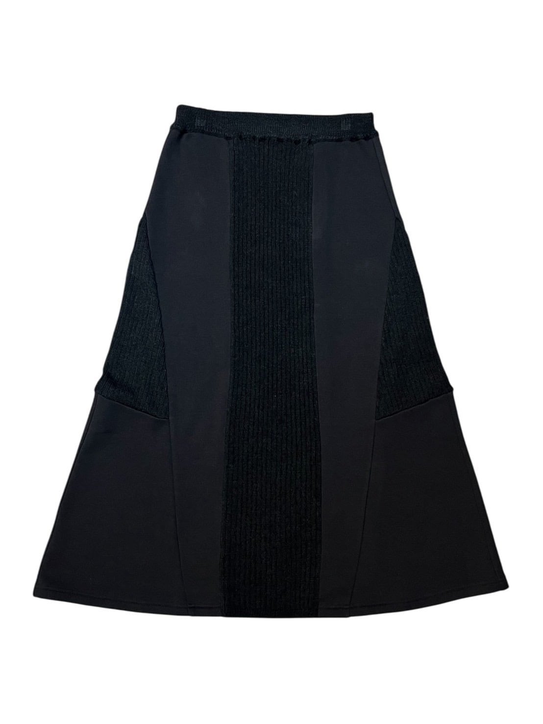 フロントとサイドに入ったニット調の切替ラインが縦のラインを強調し、すっきりとしたシルエットを演出。