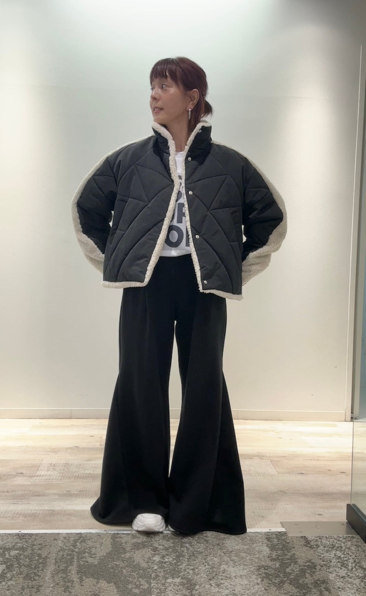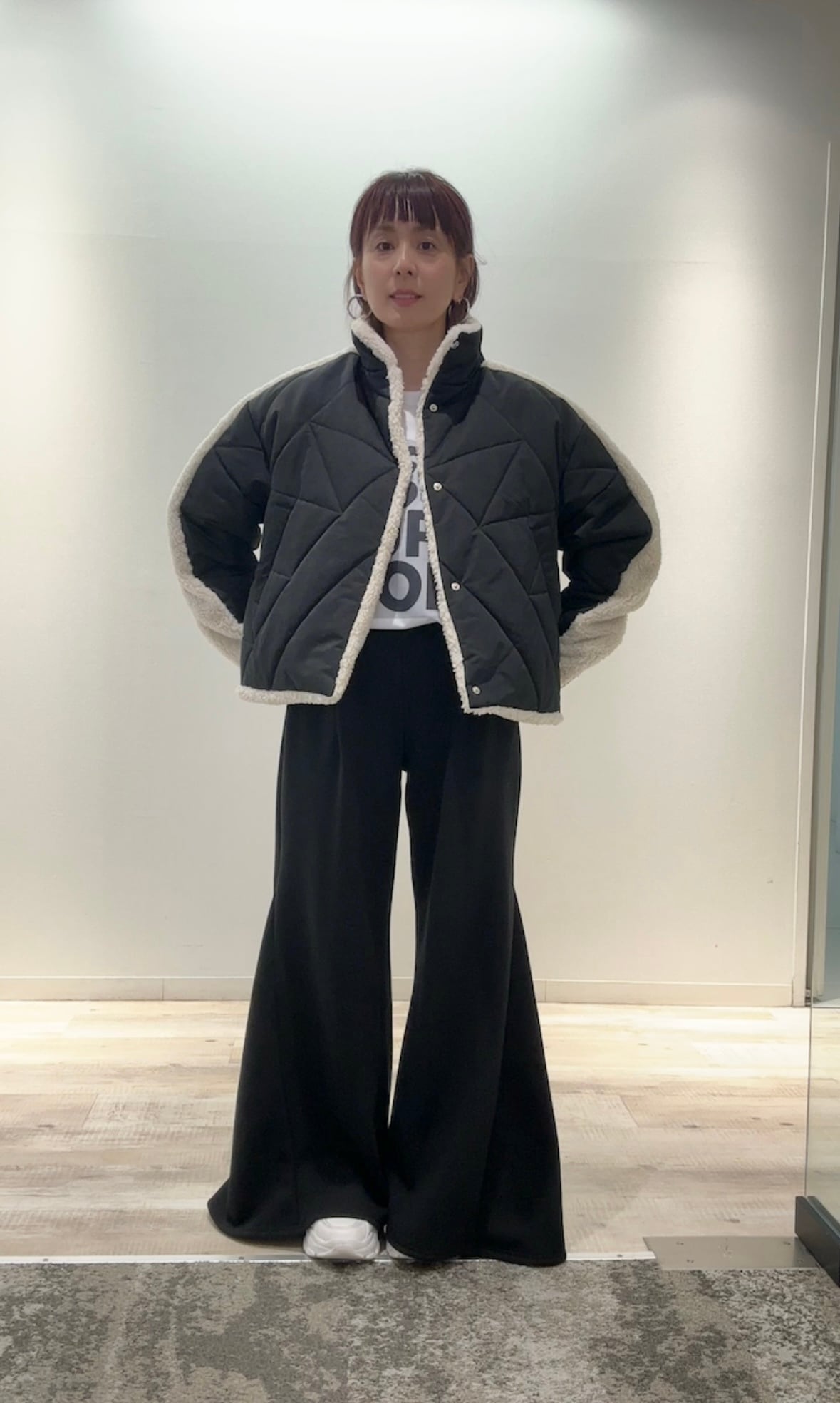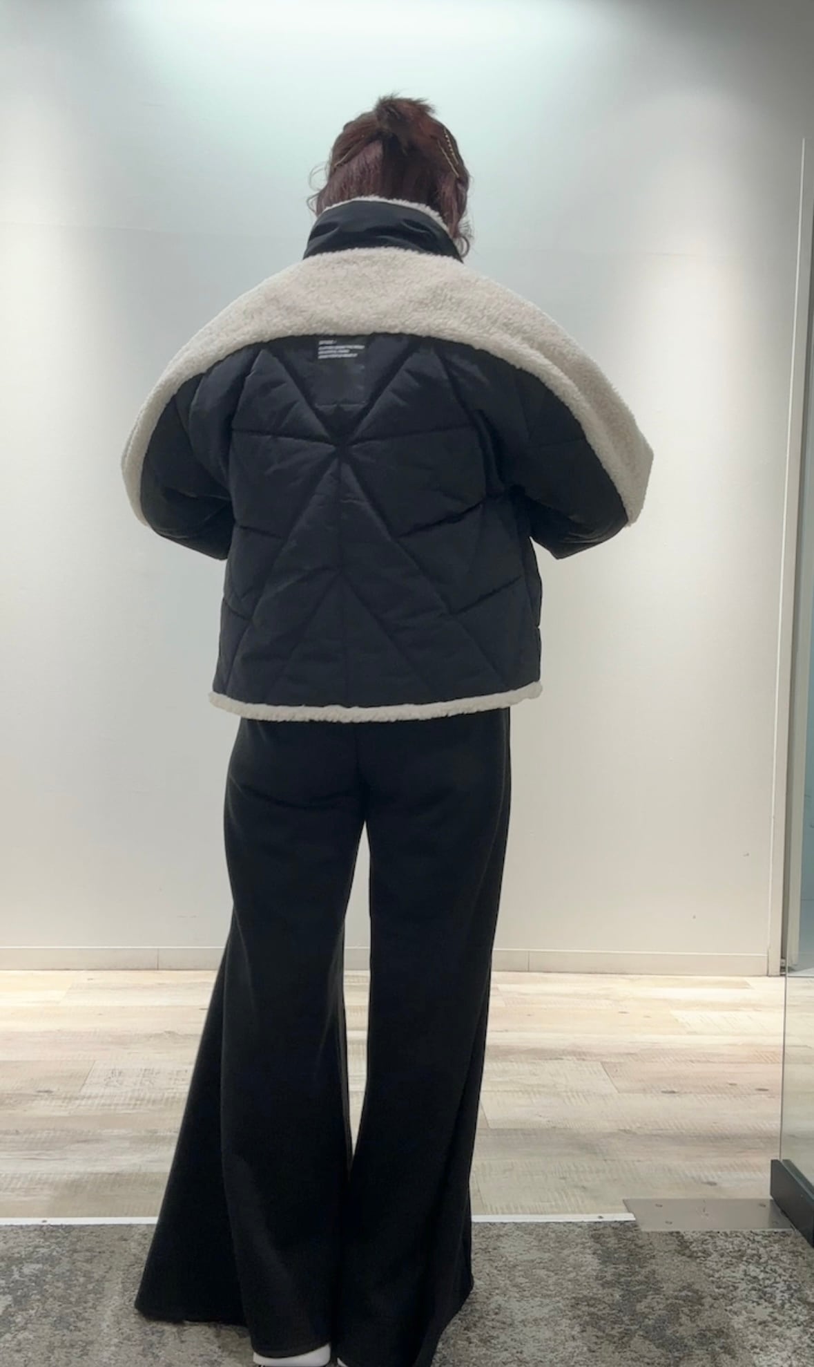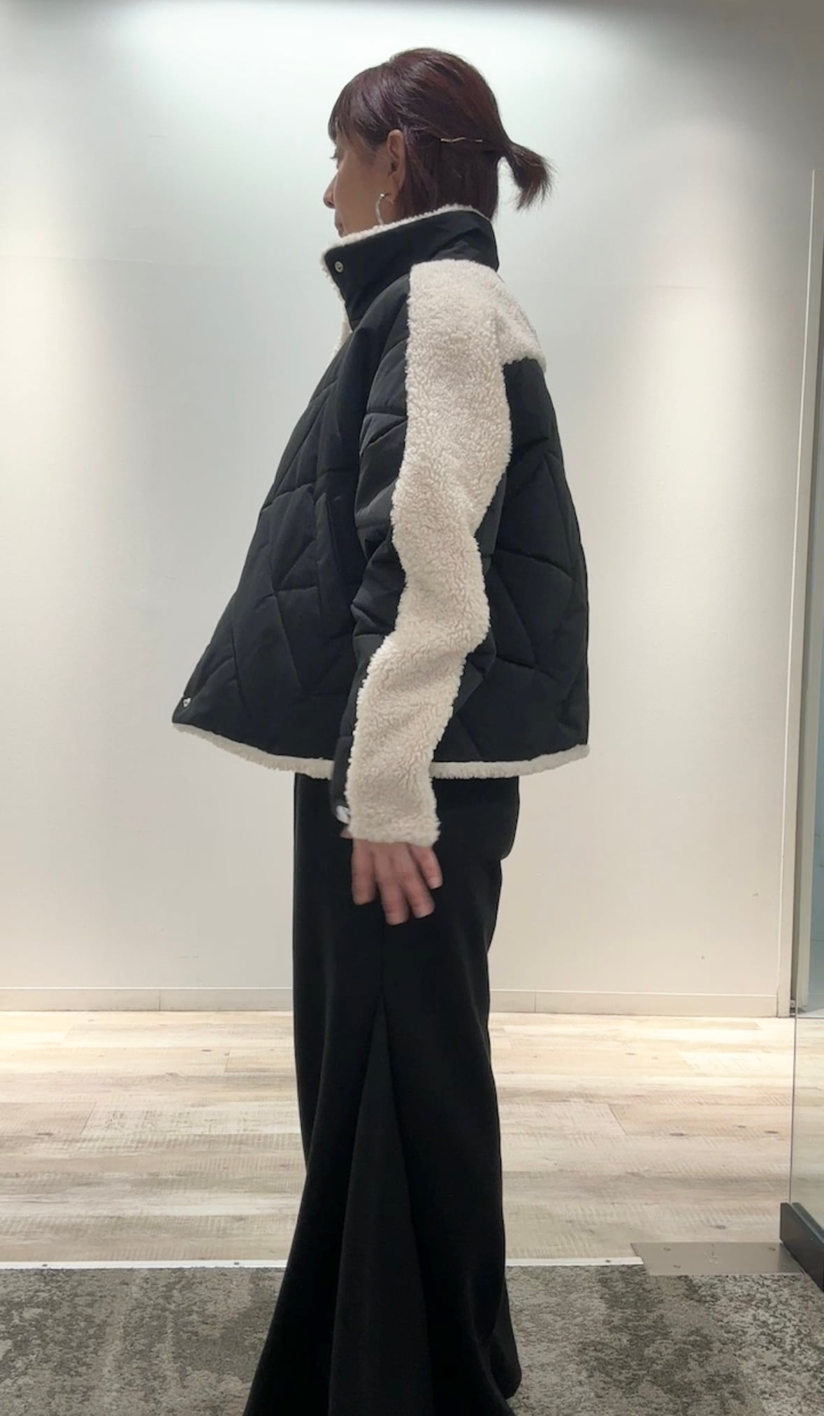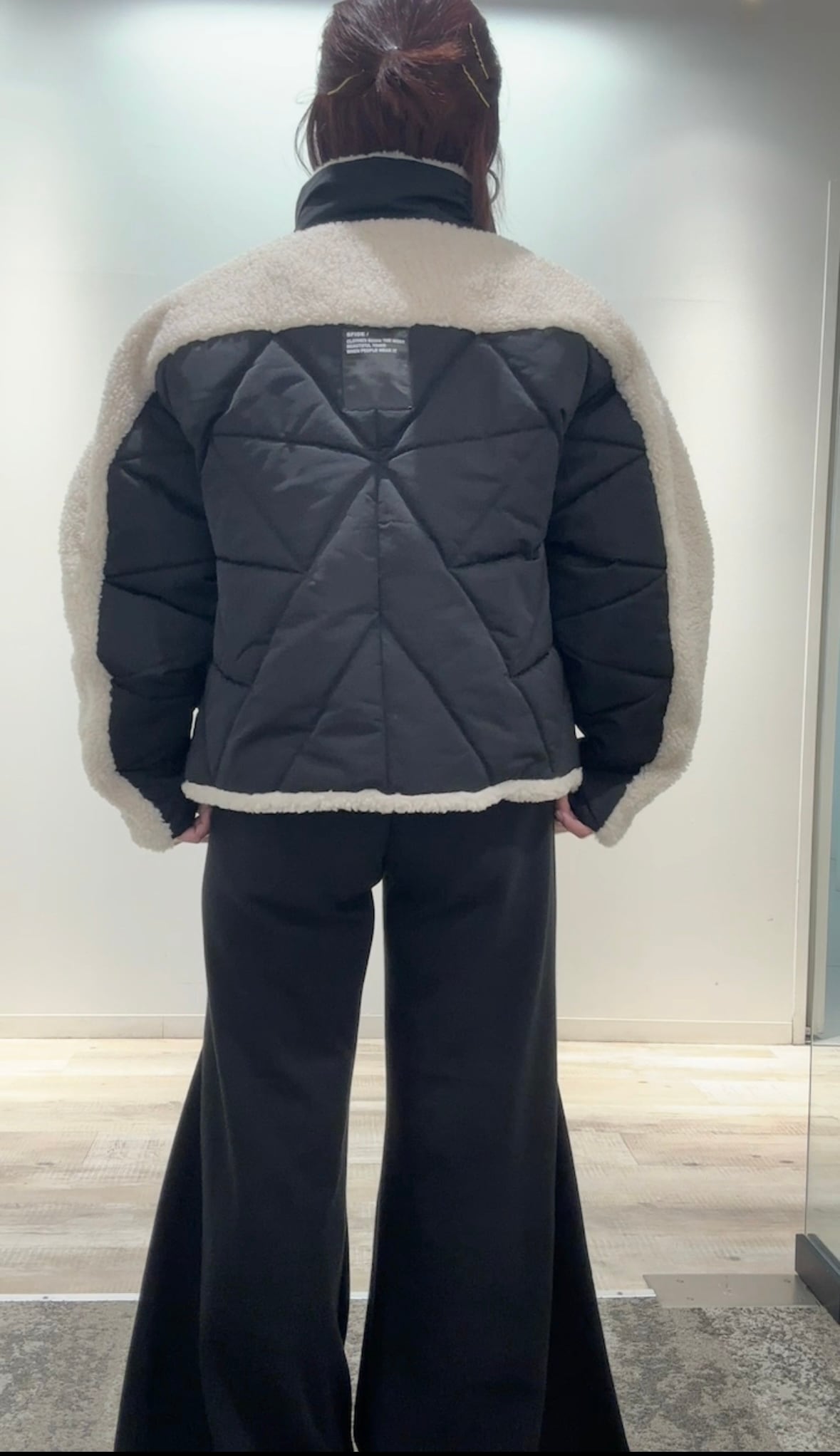 ・袖と背中にボアをあしらったデザインがポイント