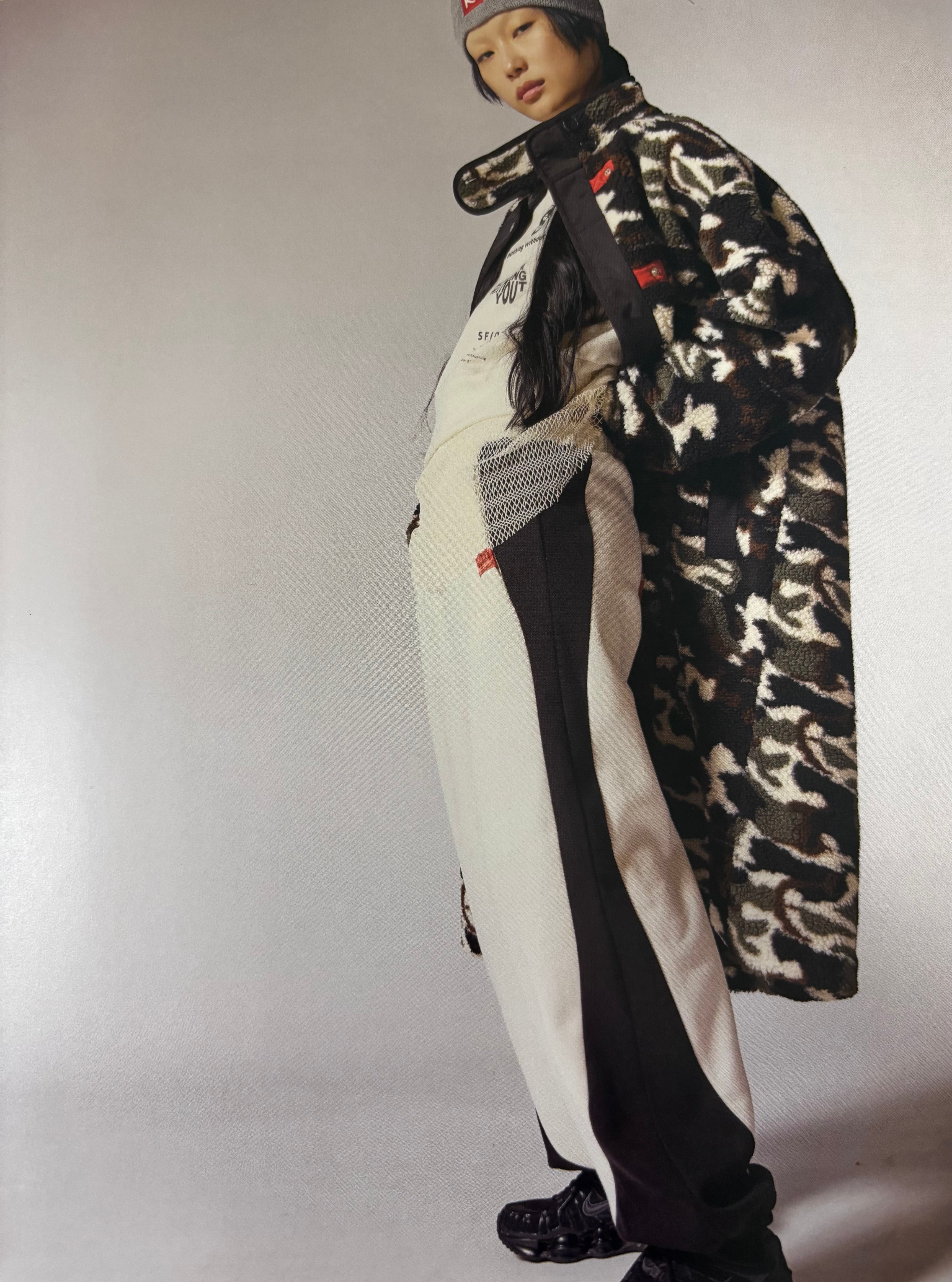 袖口にはブランドらしい赤タグをワンポイントでオン。