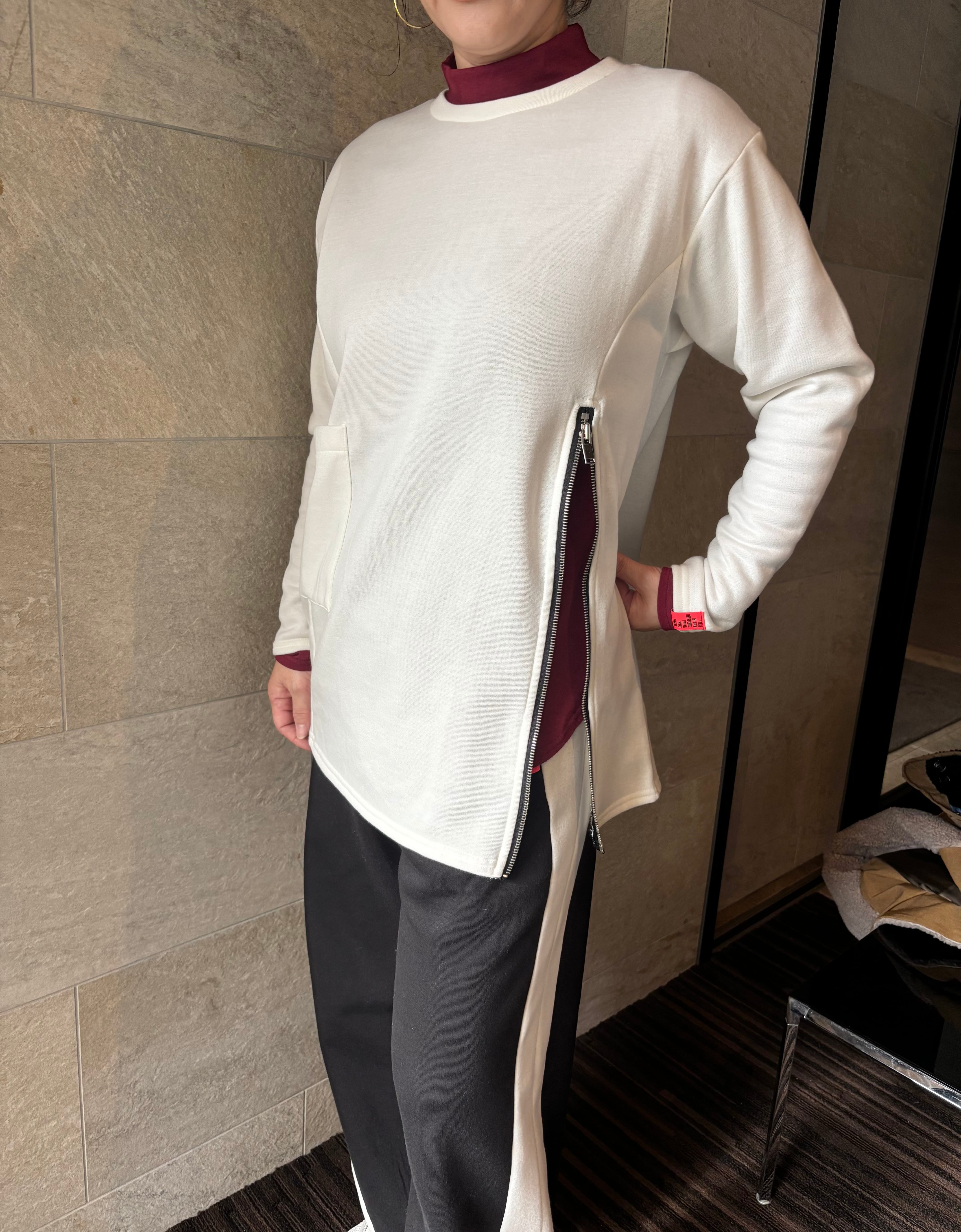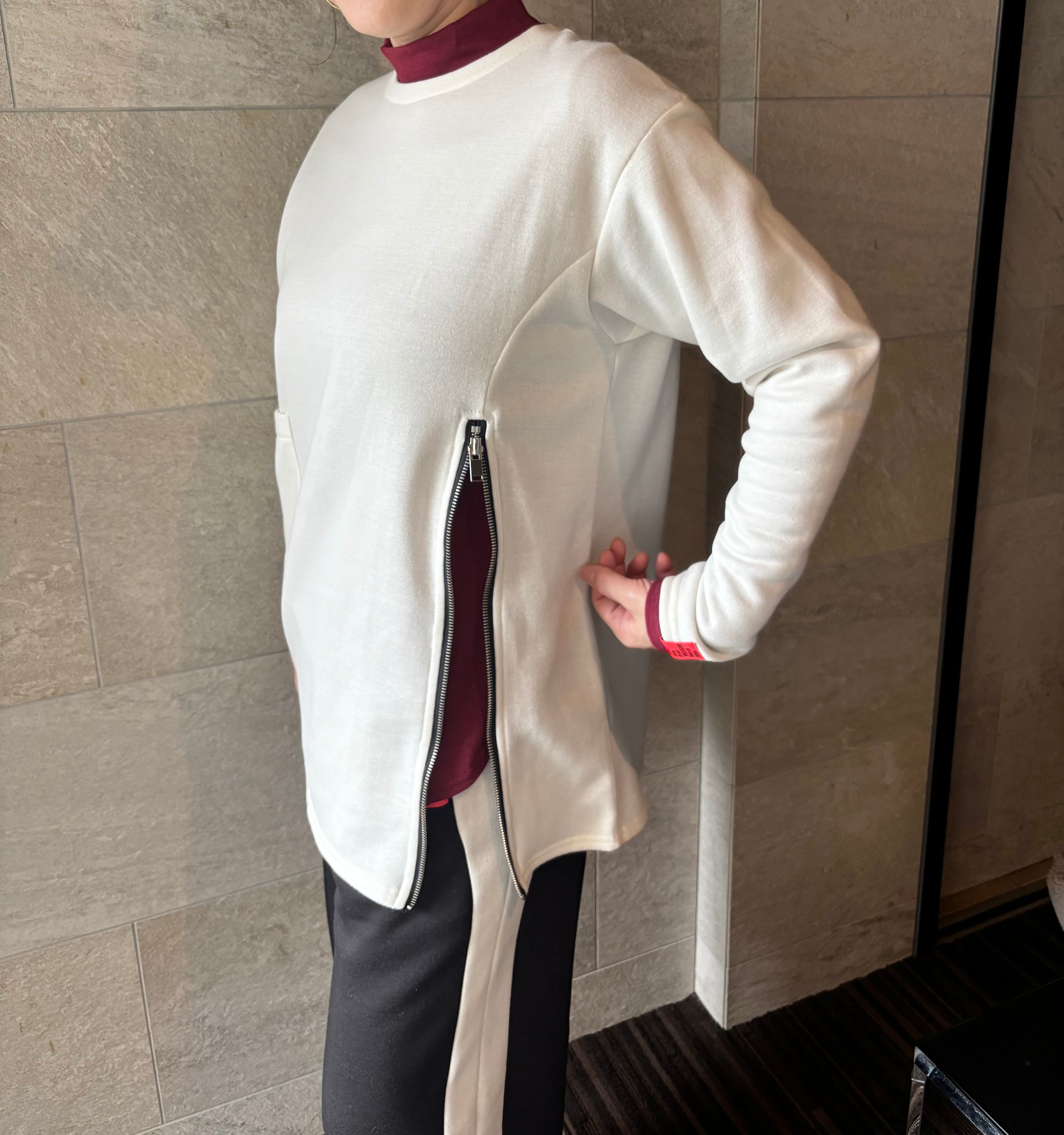 大胆なサイドジップデザインが目を引く、唯一無二のプルオーバートップス。