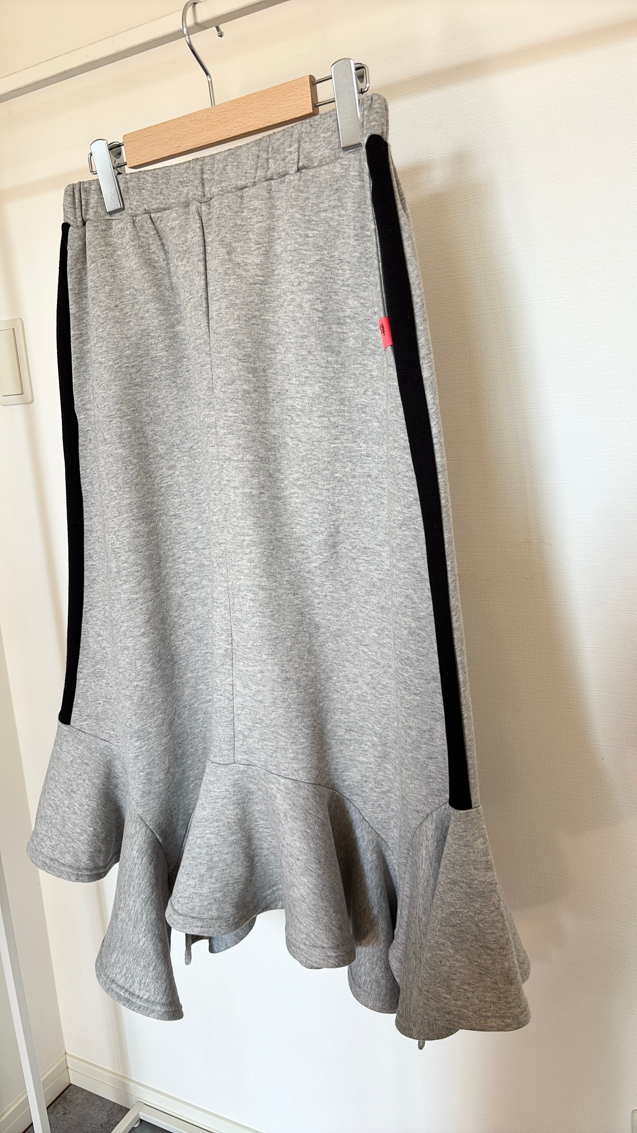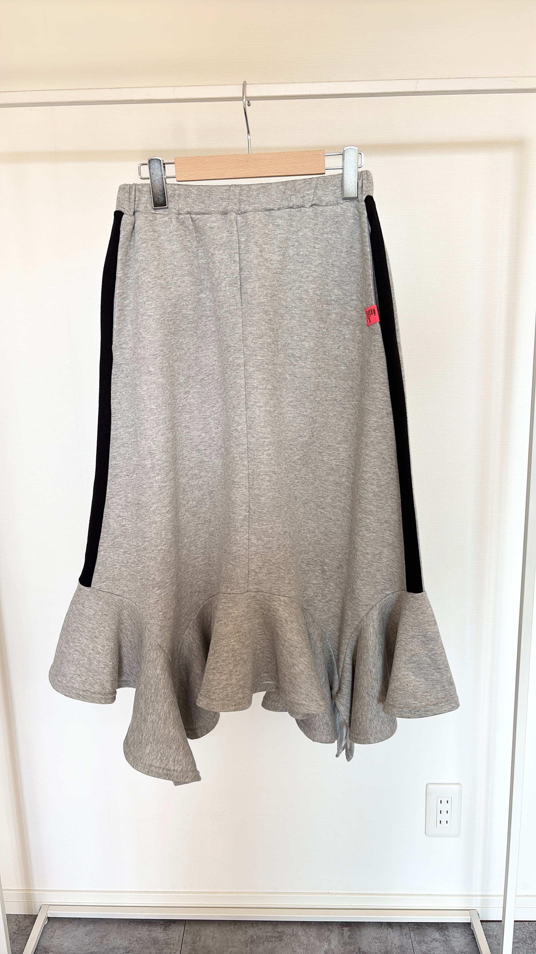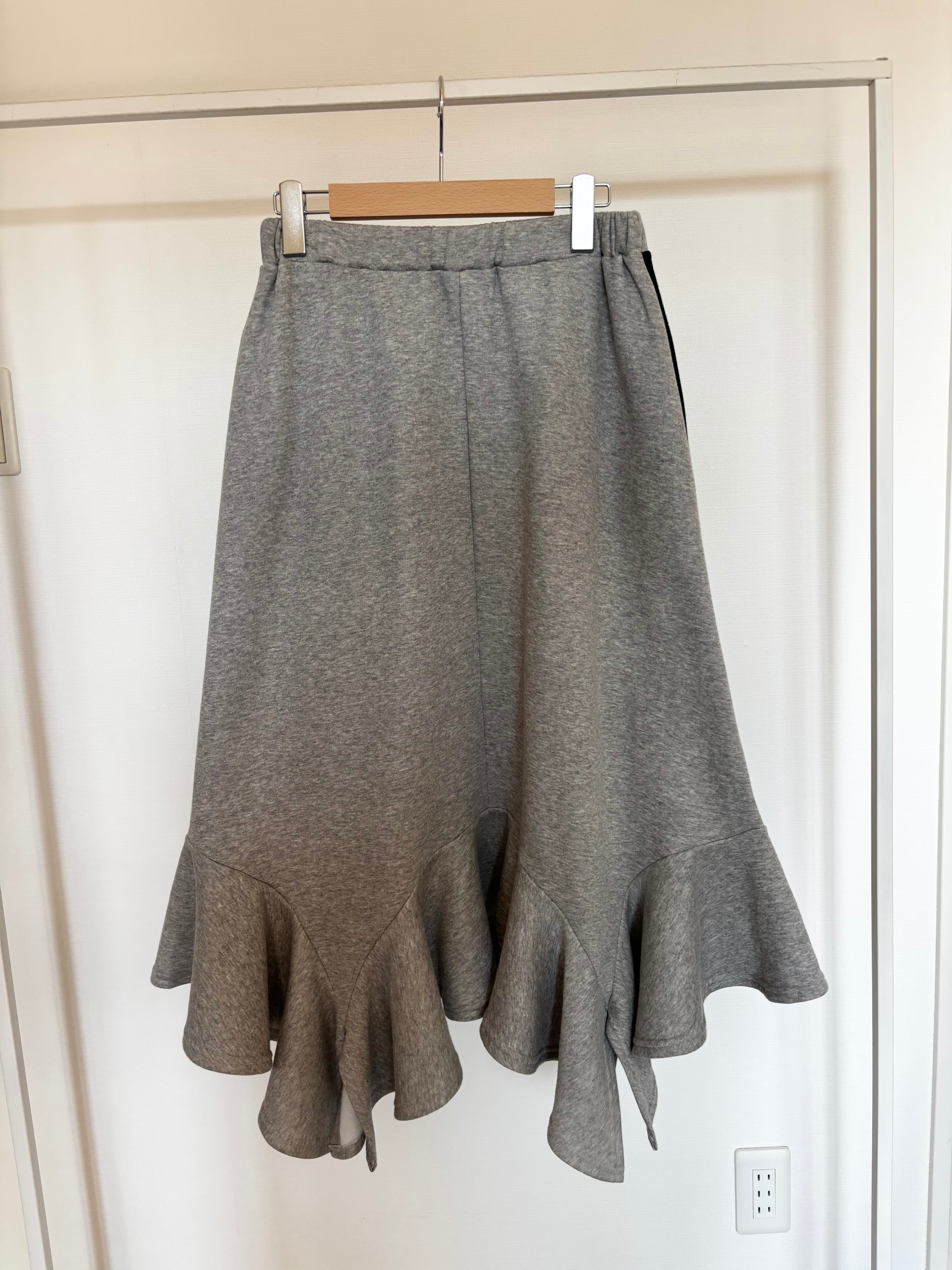 裾にたっぷりと入ったフリルが目を惹く、主役級のスウェットスカート。