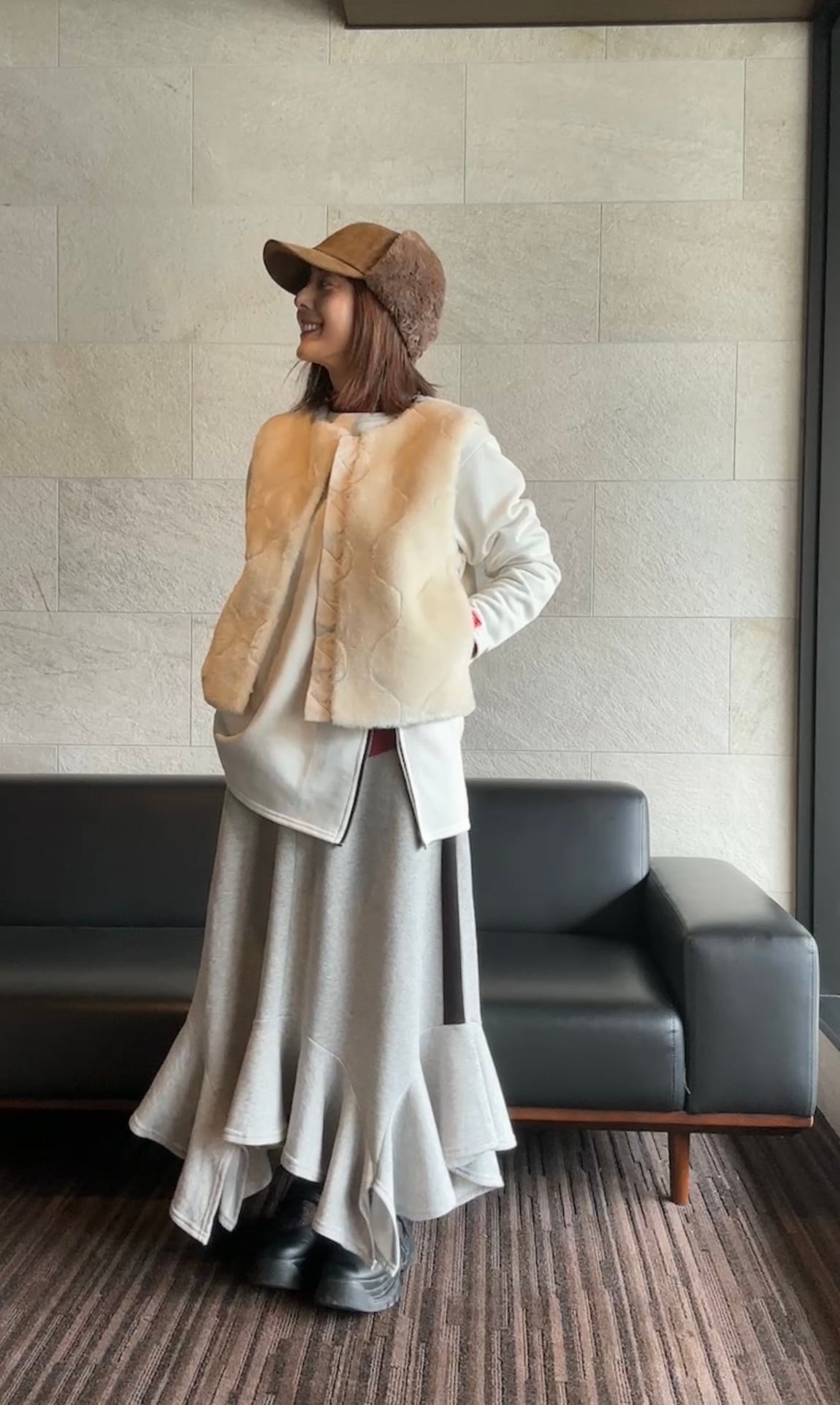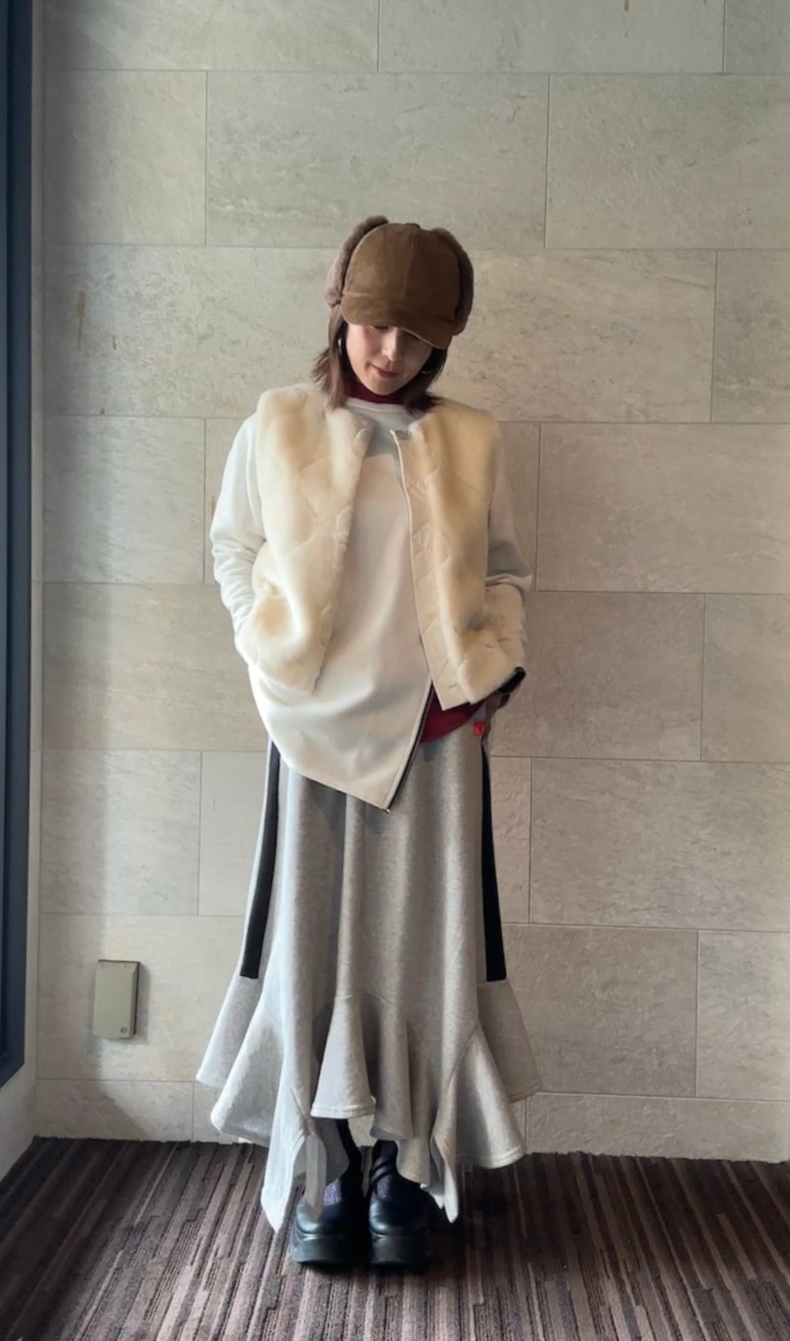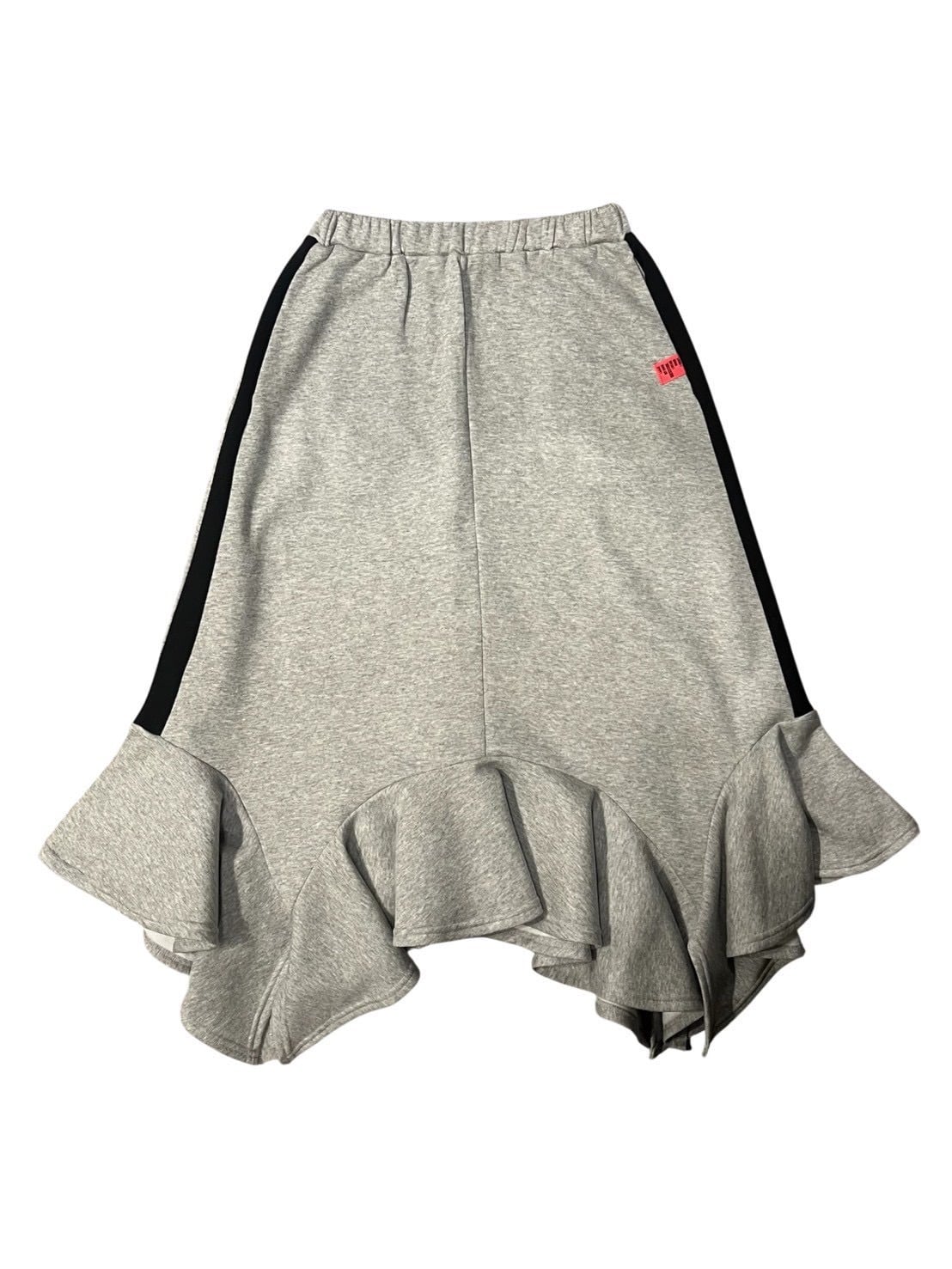 裾にたっぷりと入ったフリルが目を惹く、主役級のスウェットスカート。