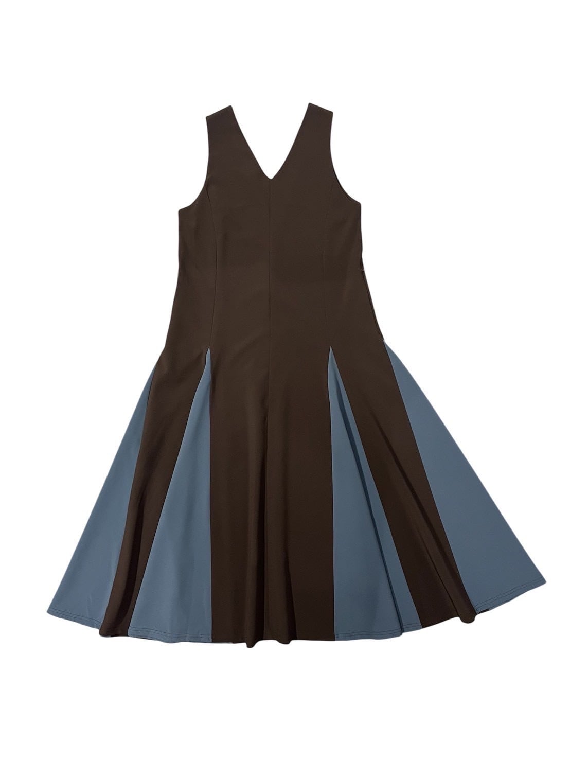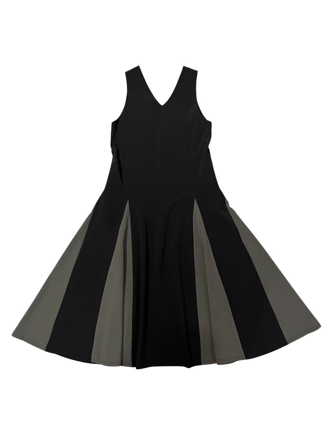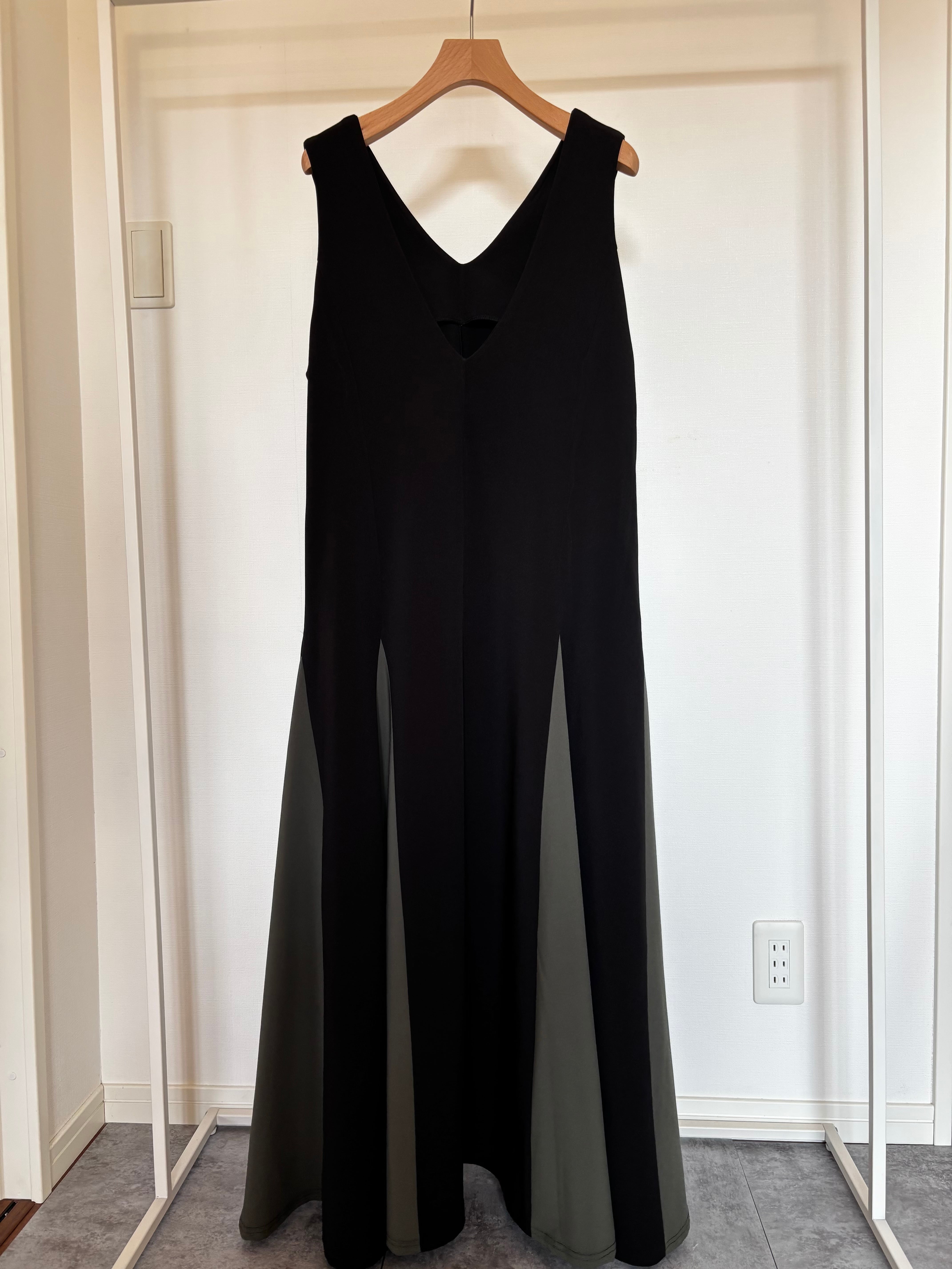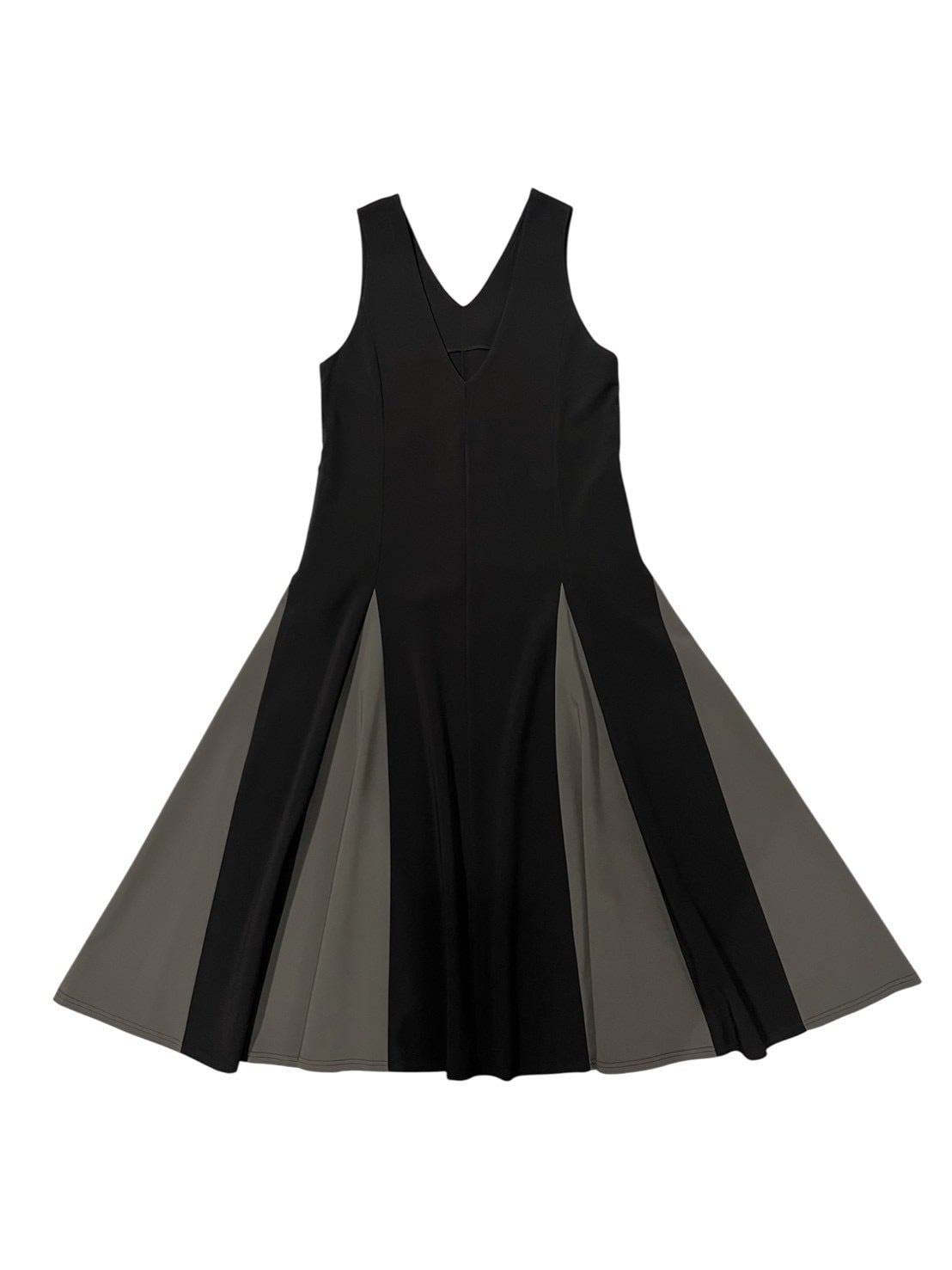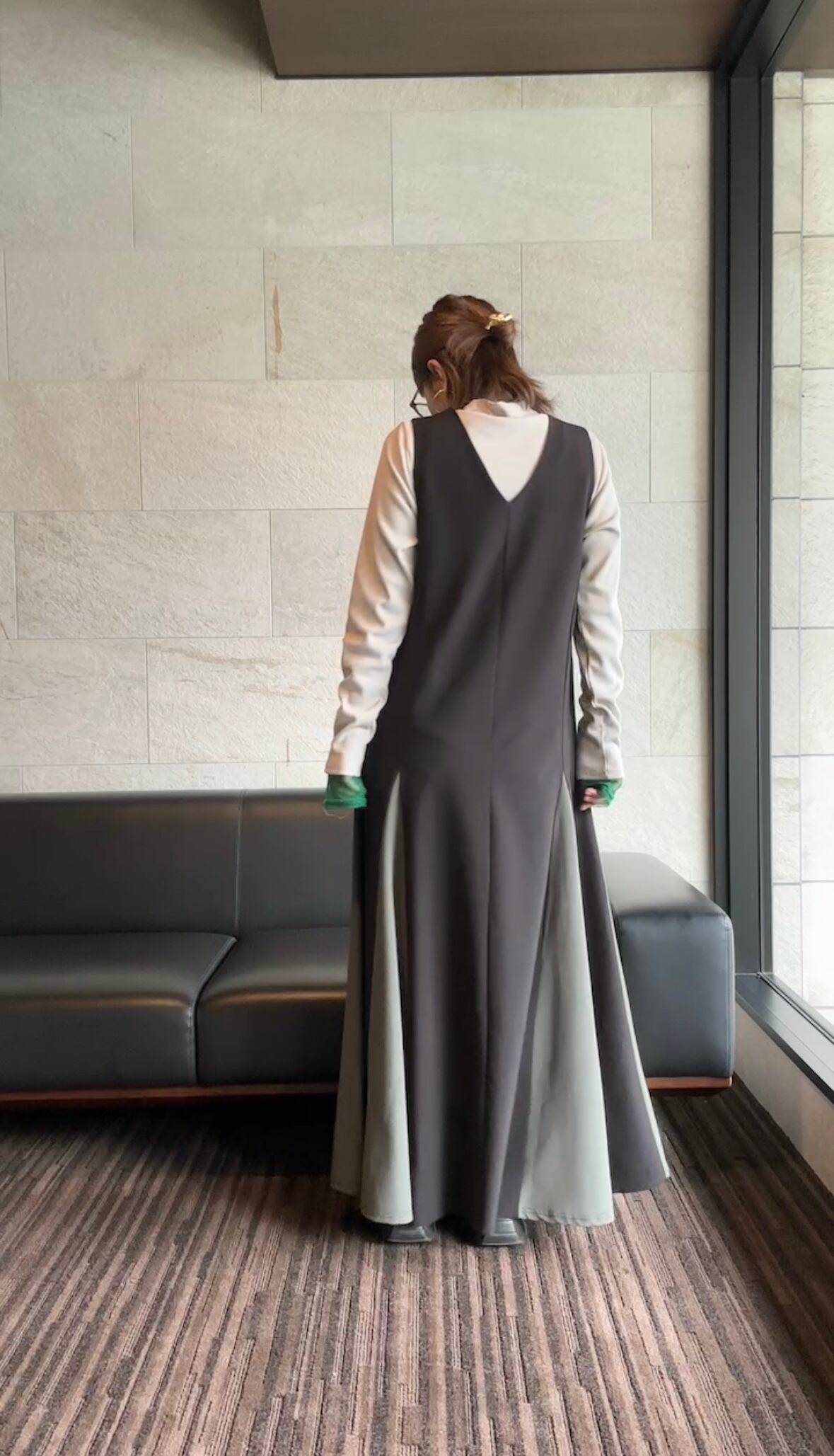 ポイントはスカート部分に施した大胆なバイカラーデザイン。