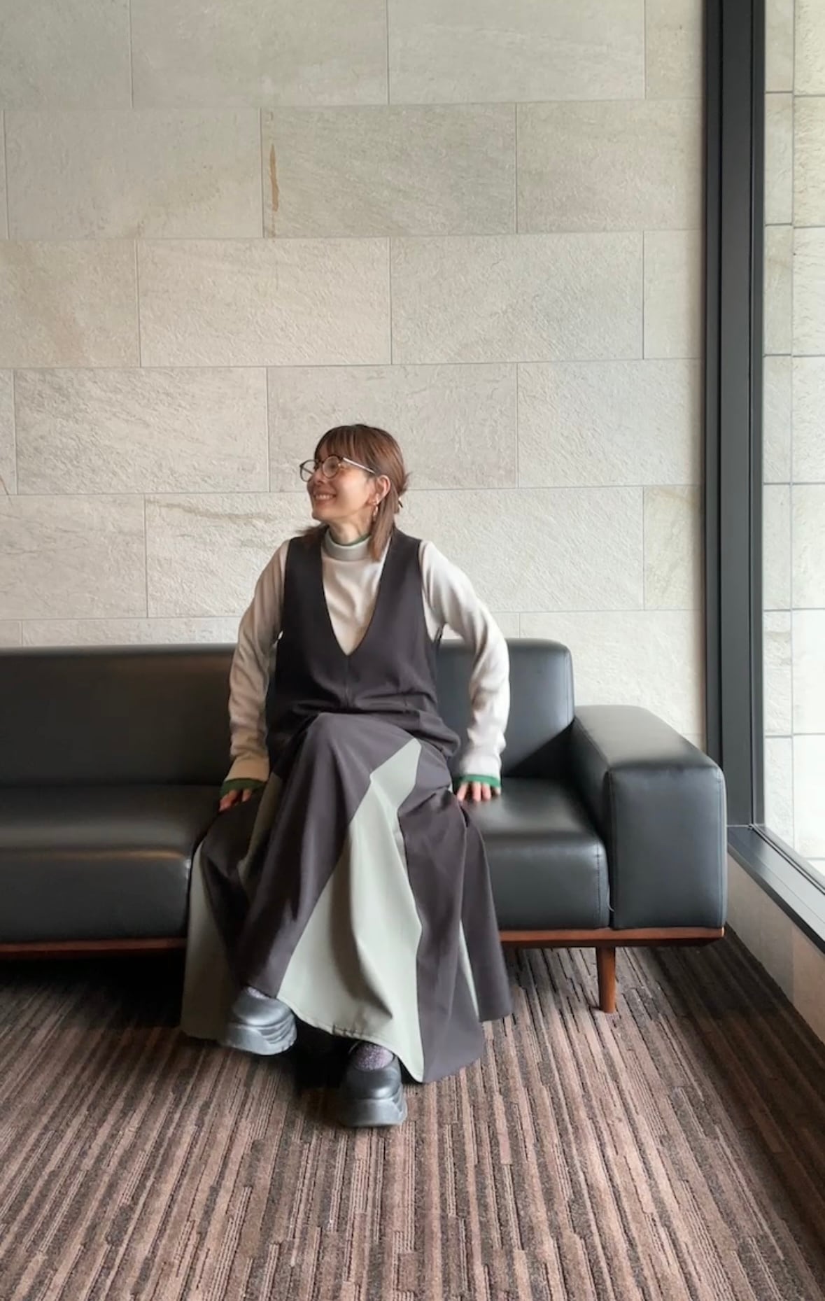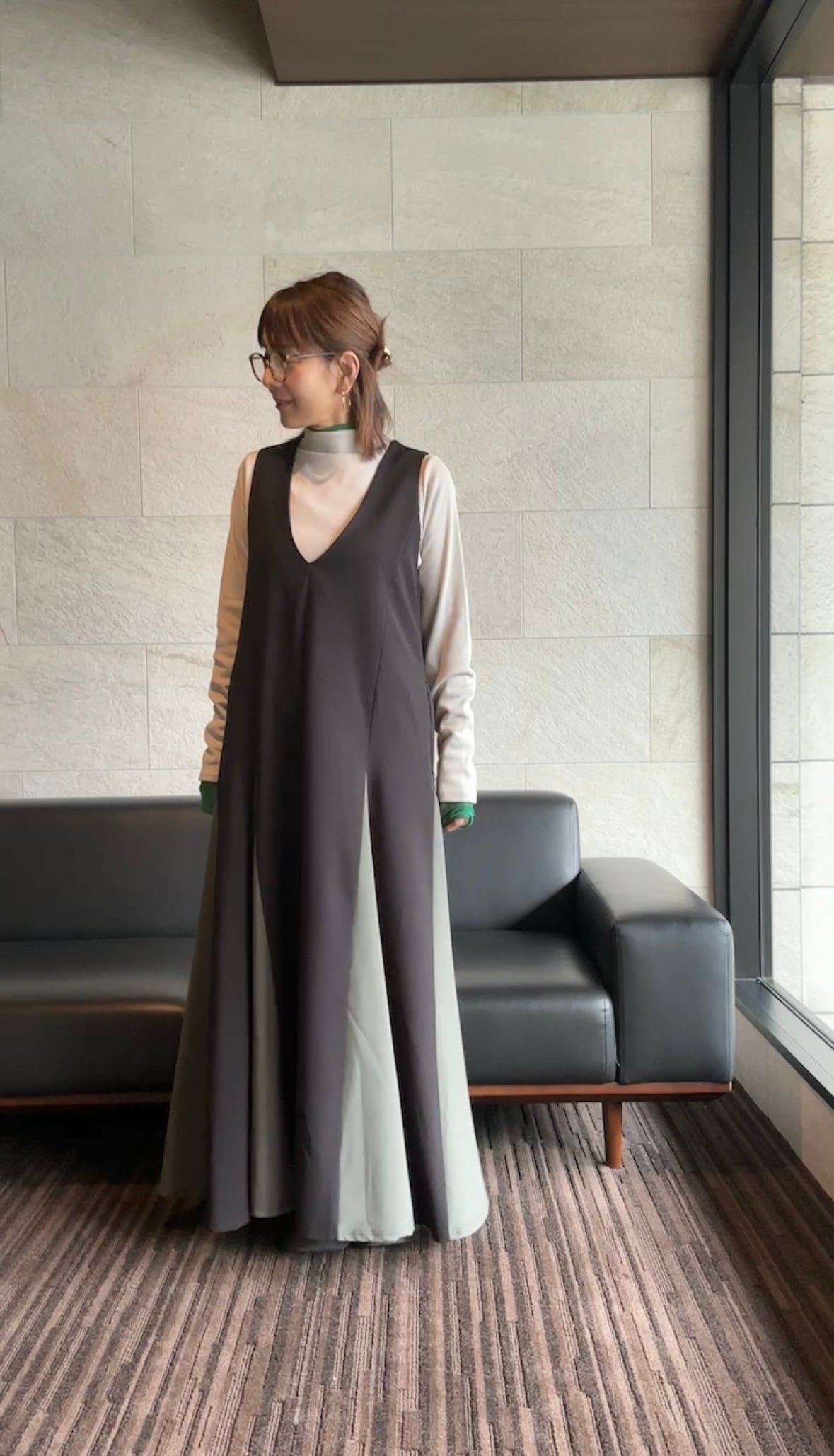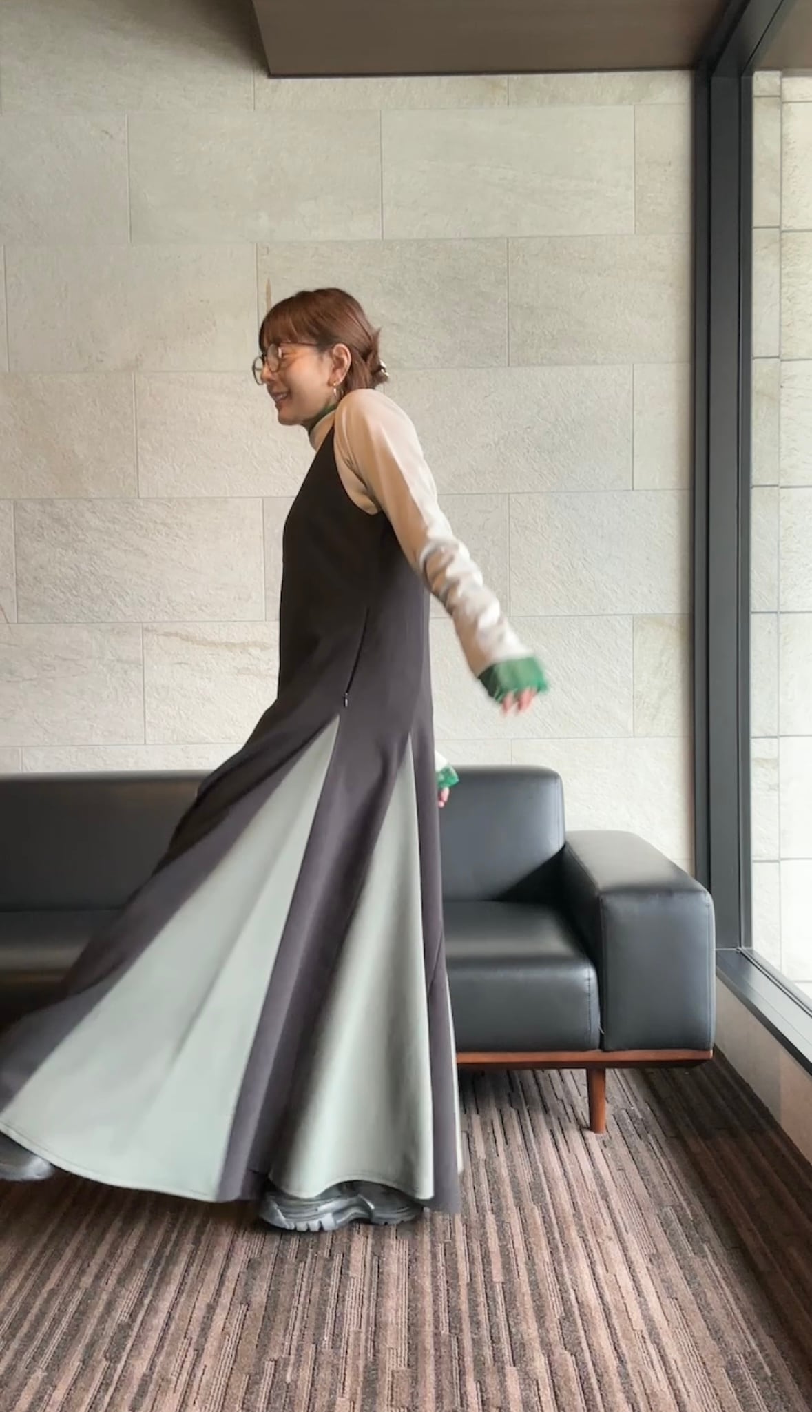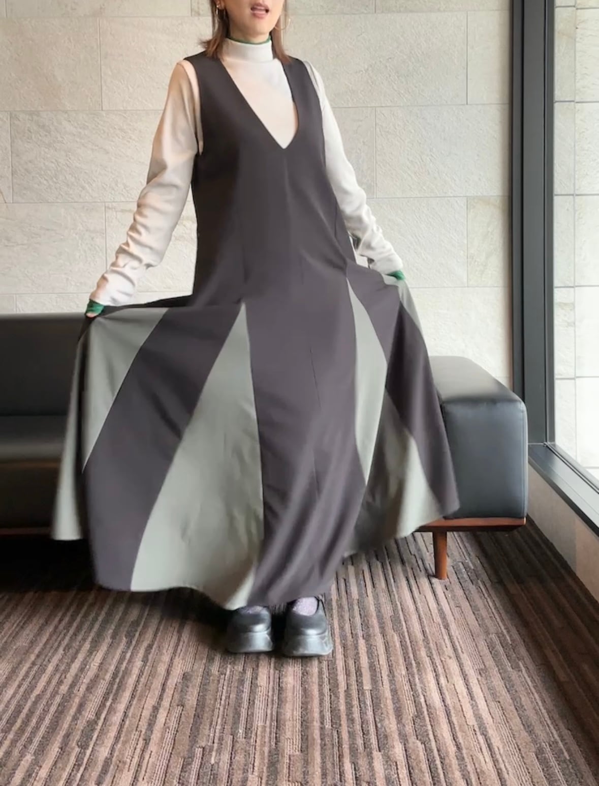 歩くたびに揺れる配色フレアが美しい、主役級ジャンパースカート。