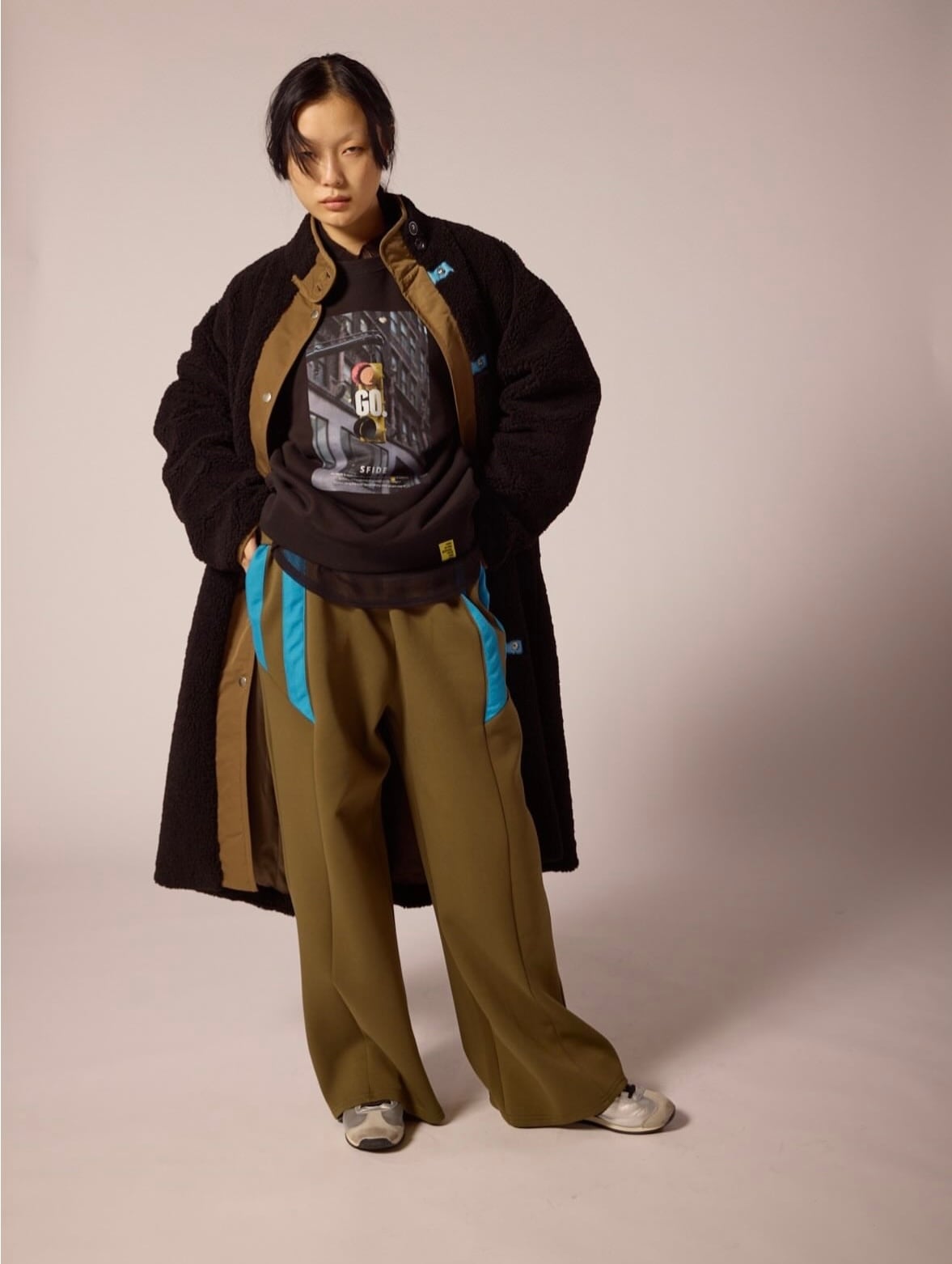 ボアの温かみと、ナイロンのすっきりとした異素材の組み合わせで