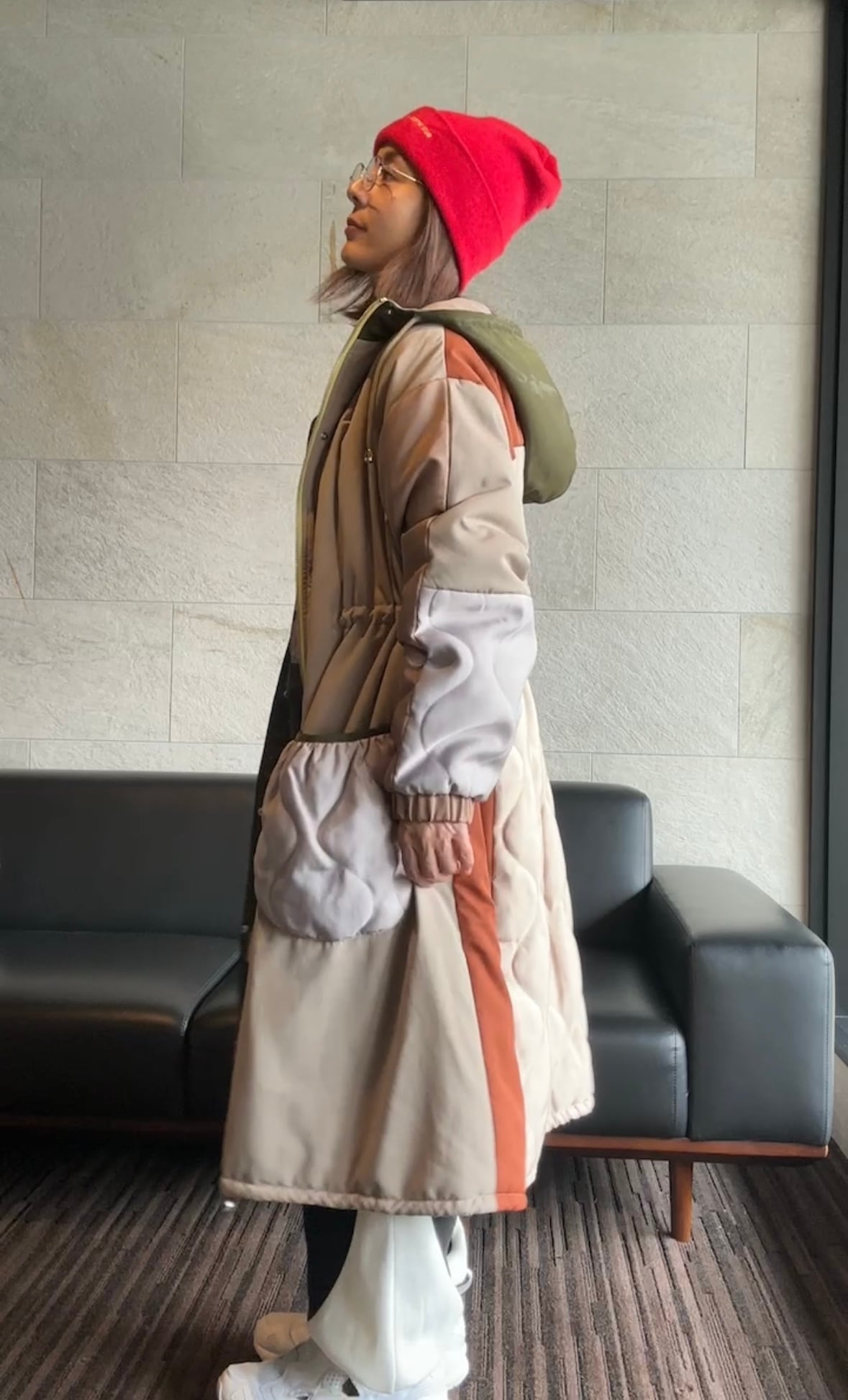 配色キルティングロングコート/NO.1258020