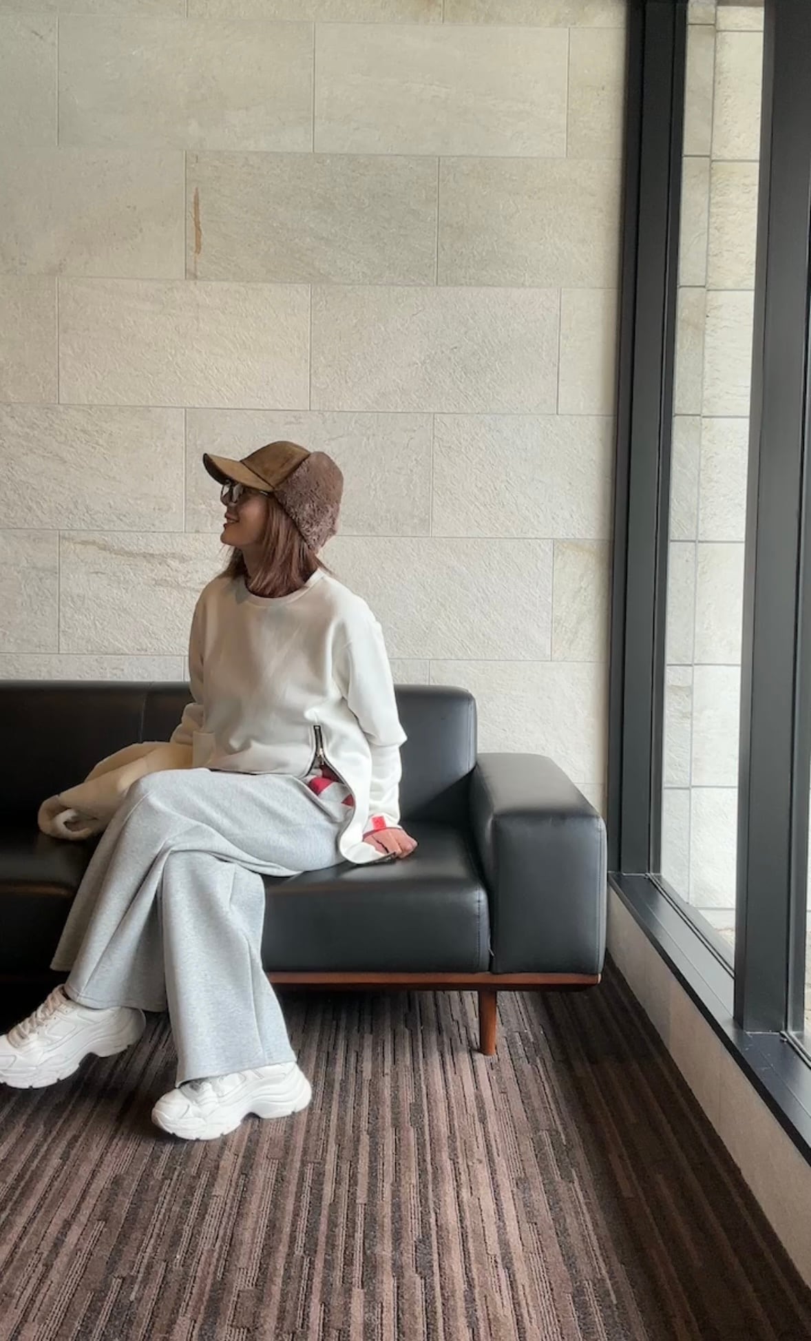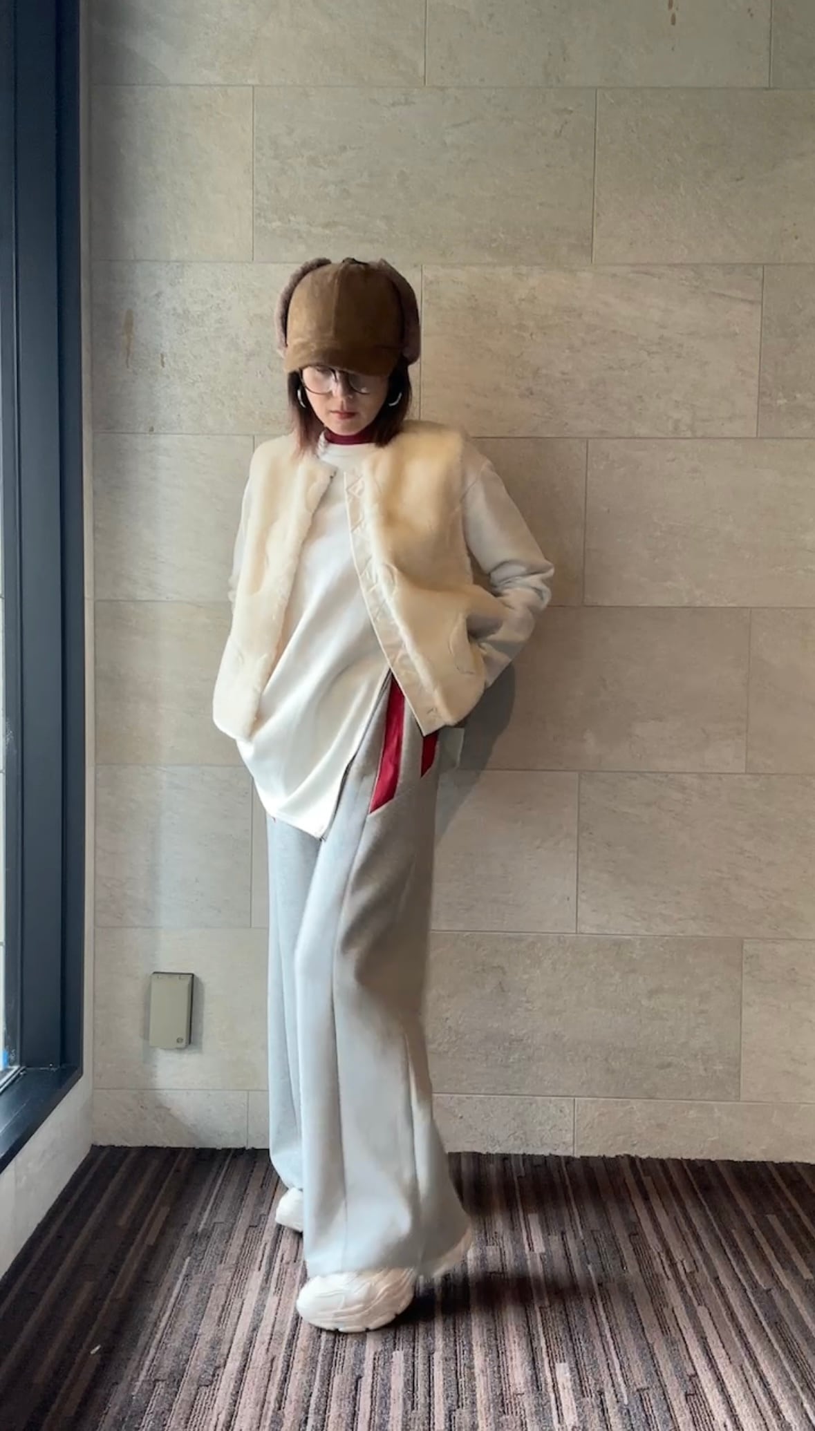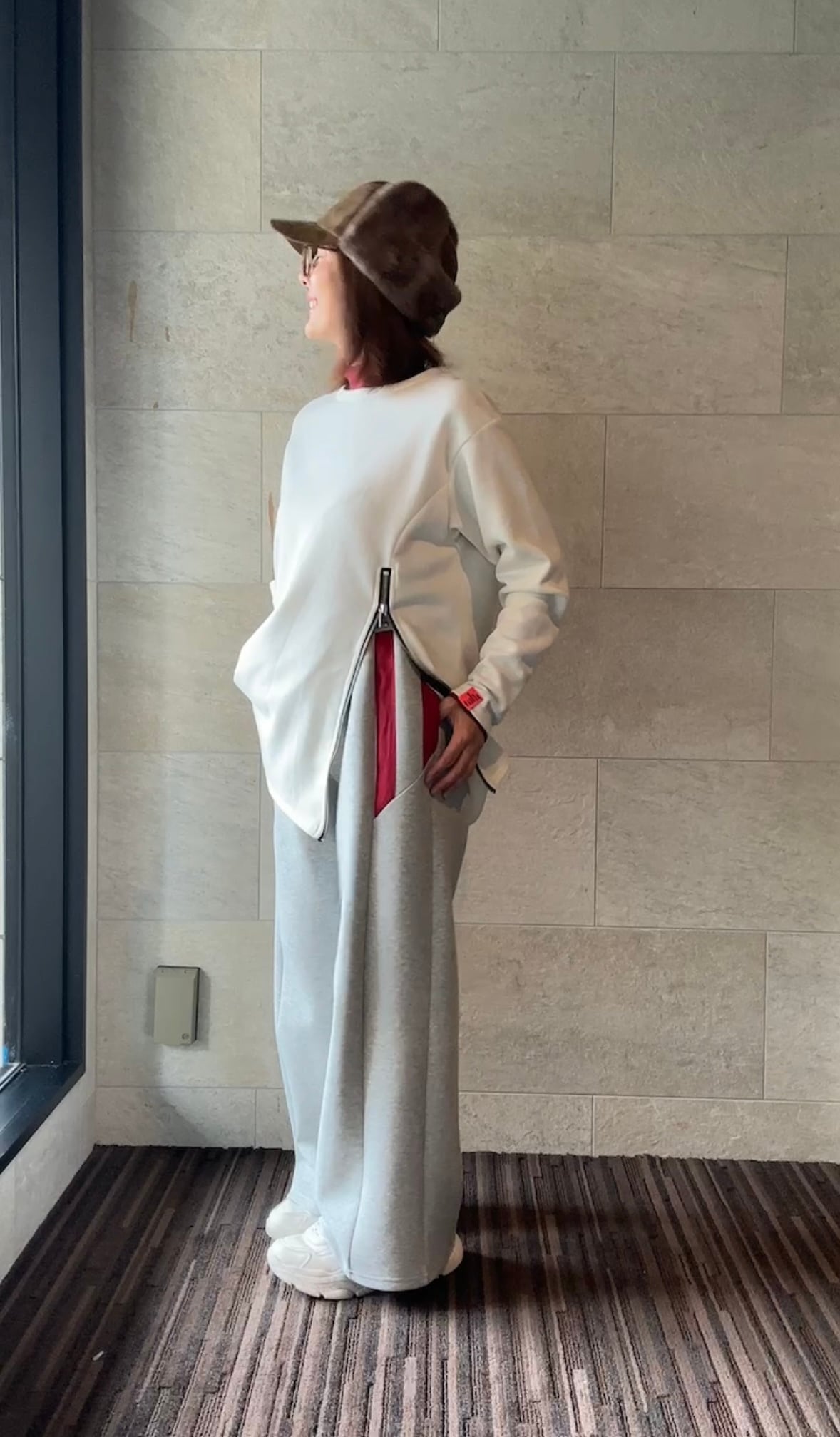 落ち感のある素材が縦のラインを強調し、脚をすっきり見せてくれます。