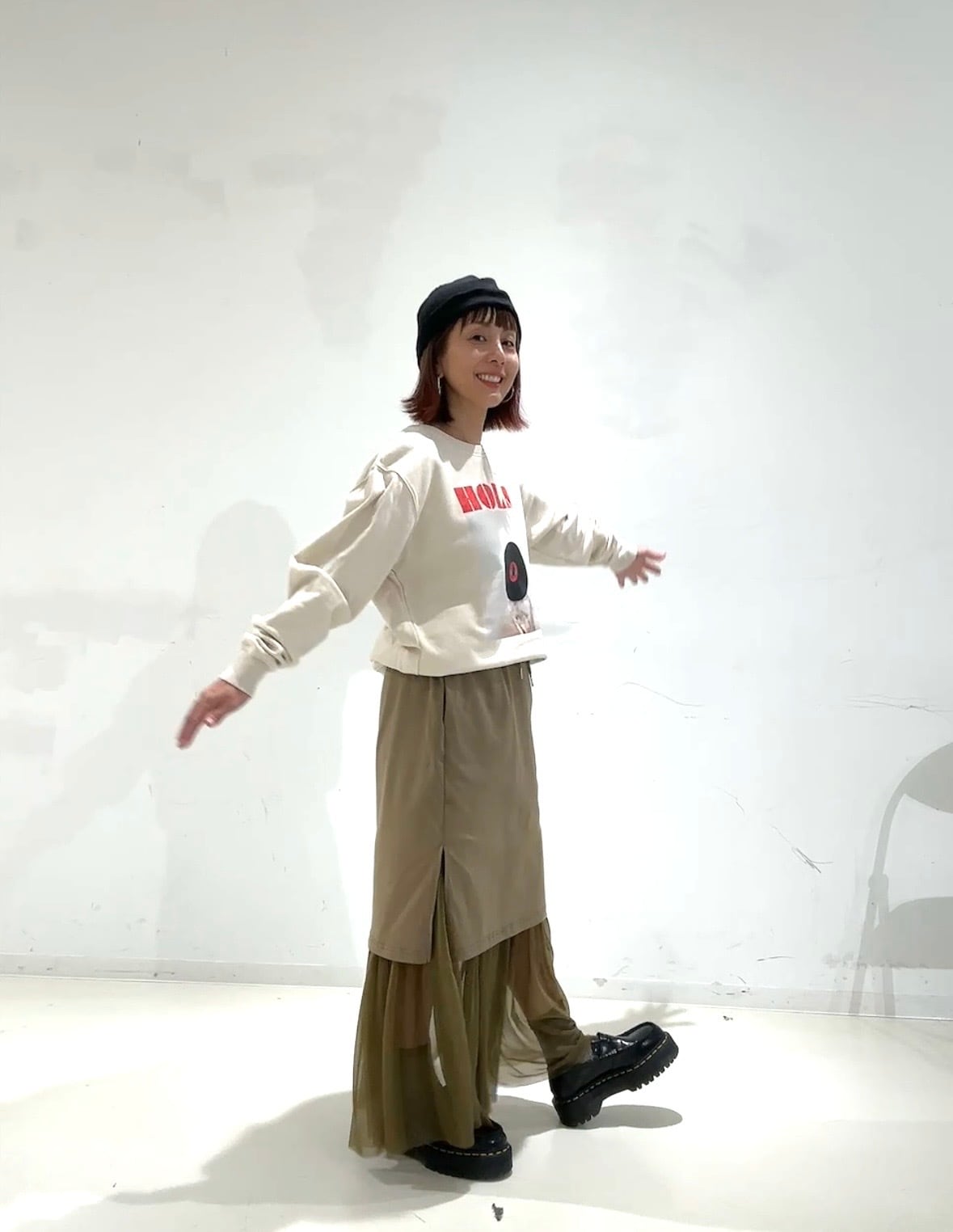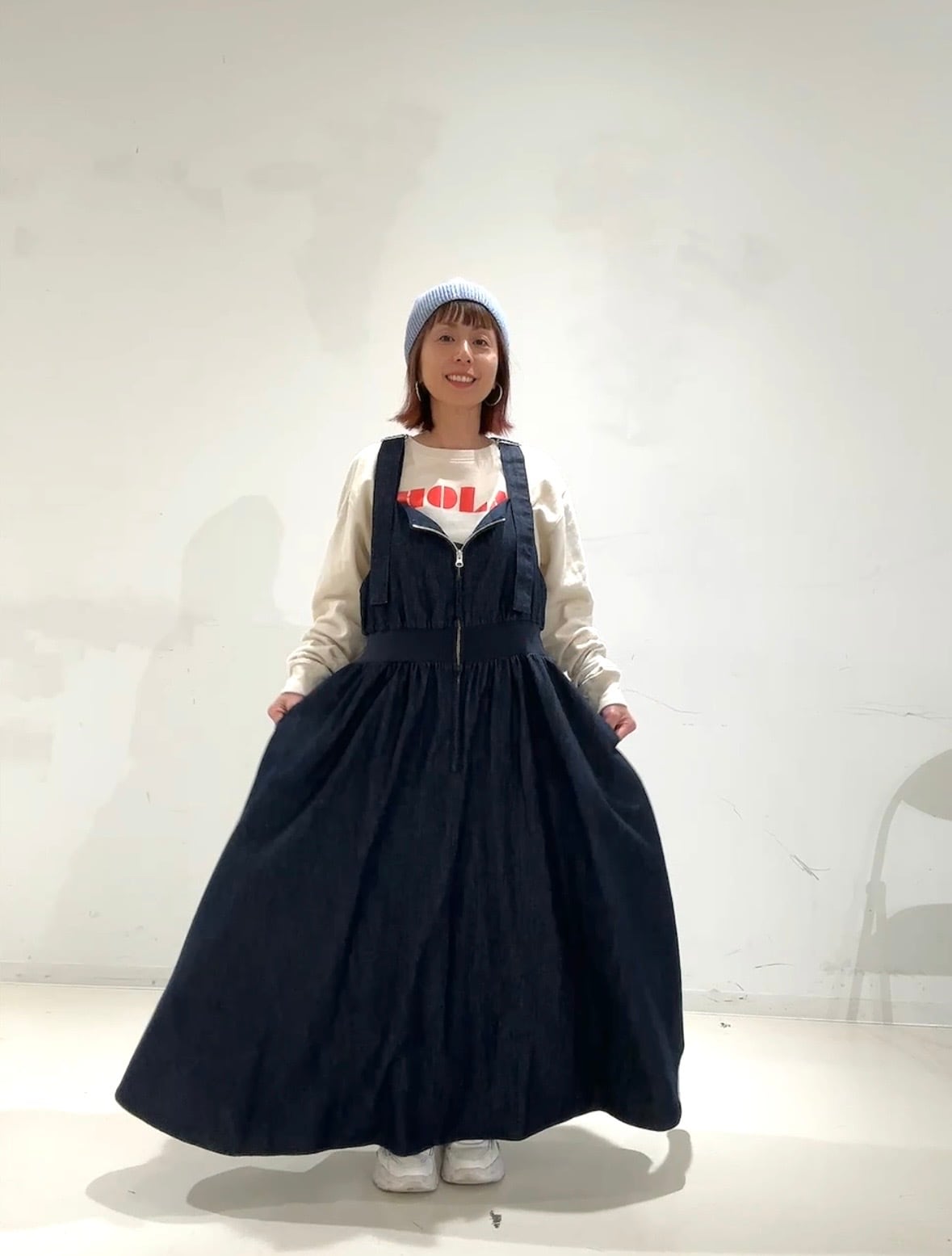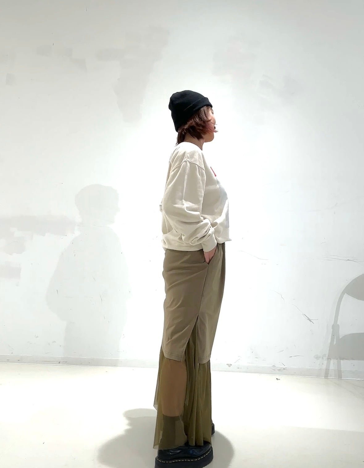 1枚でコーデの主役になるので、シンプルなボトムと合わせるだけでスタイリングが完成します。