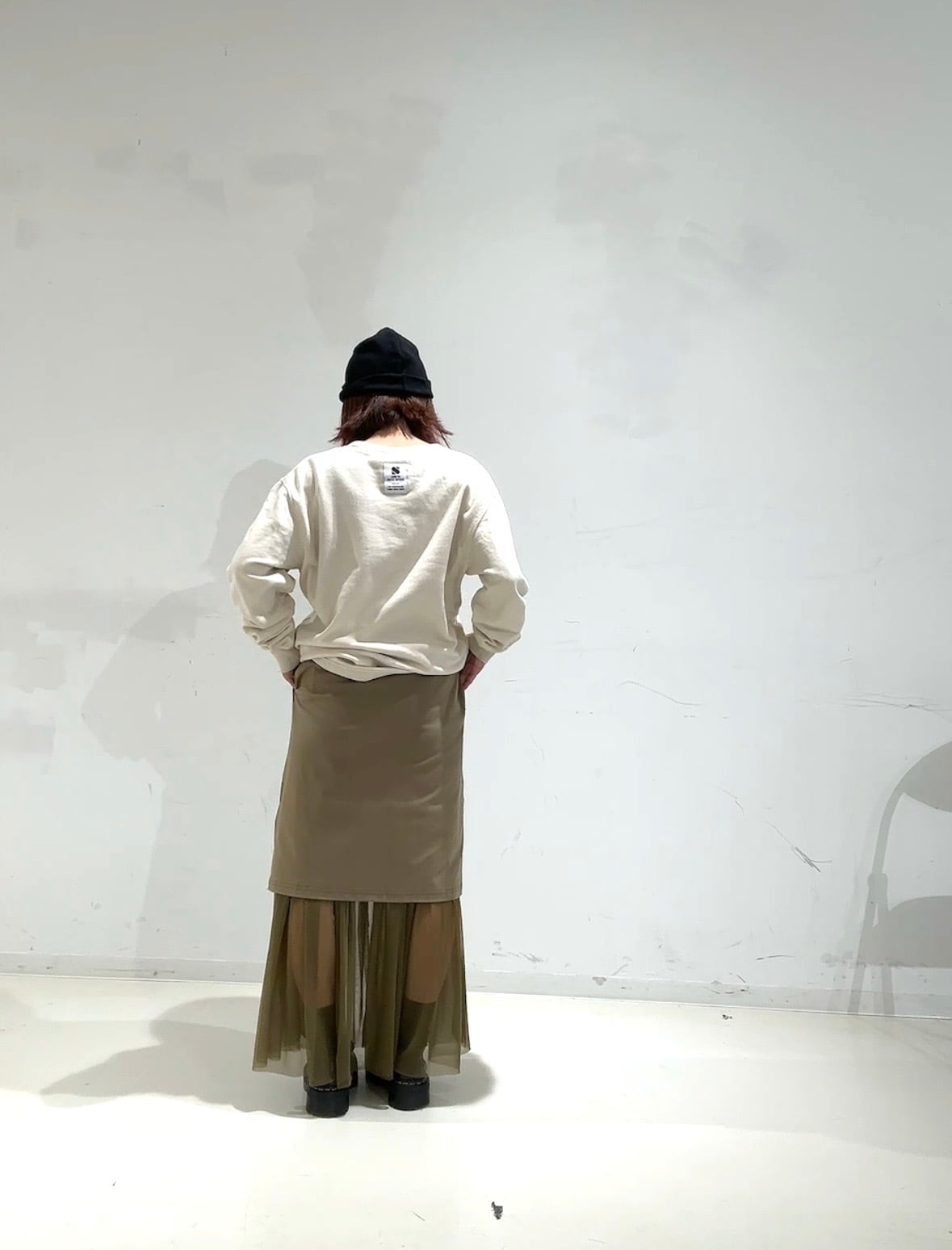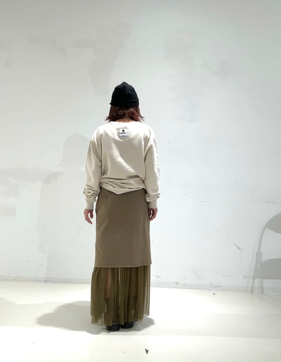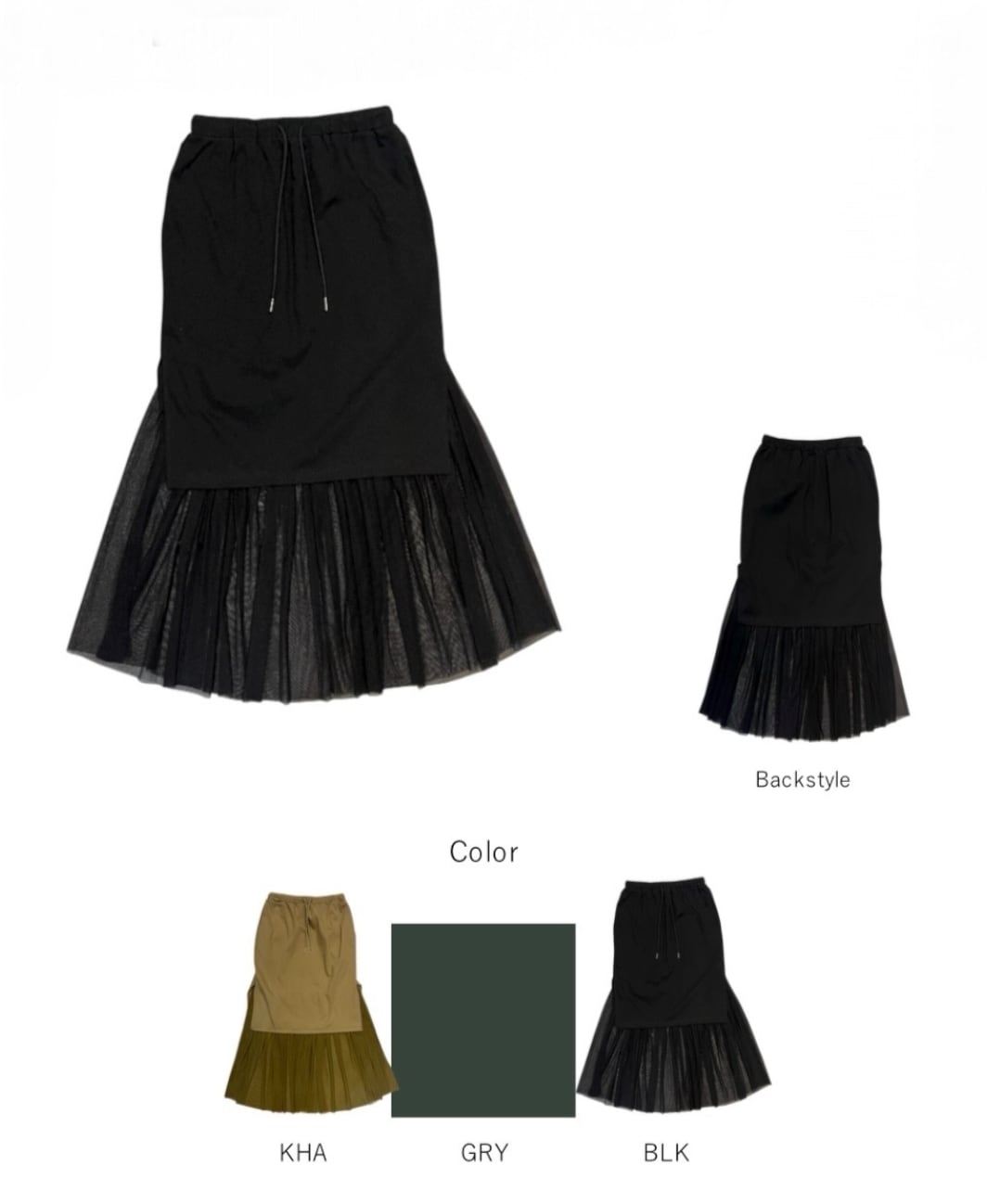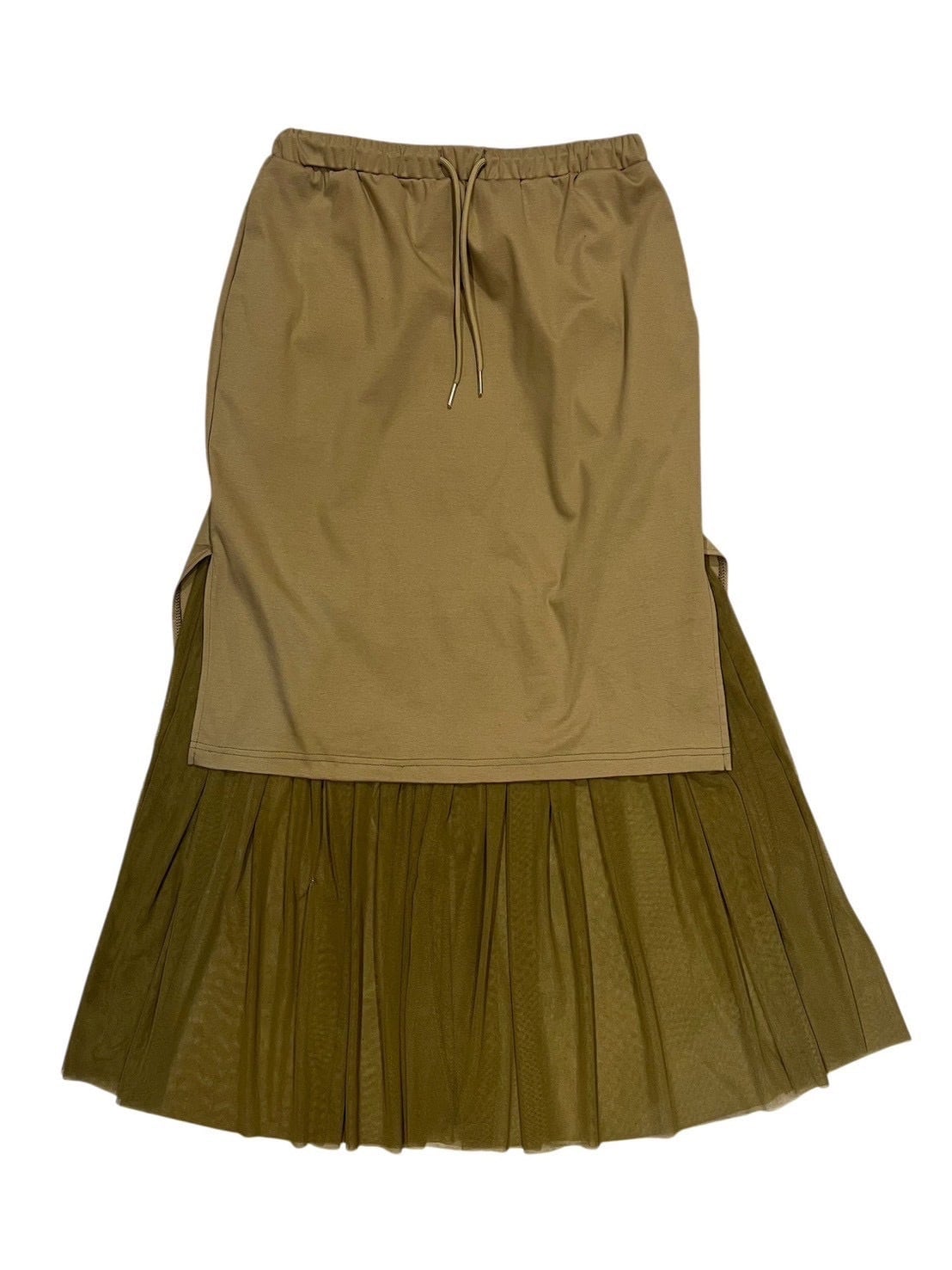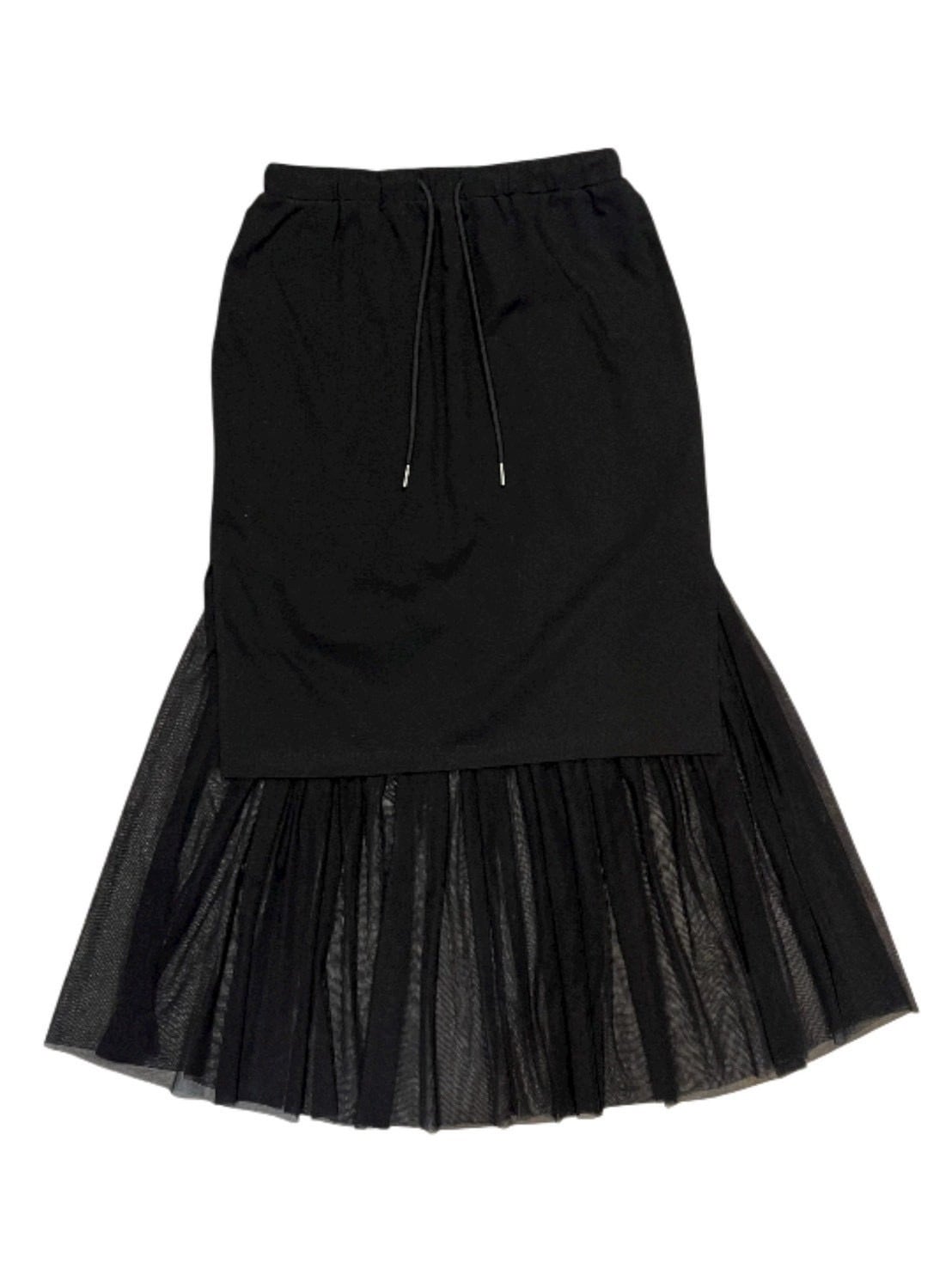裾とサイドにチュールを重ねることで