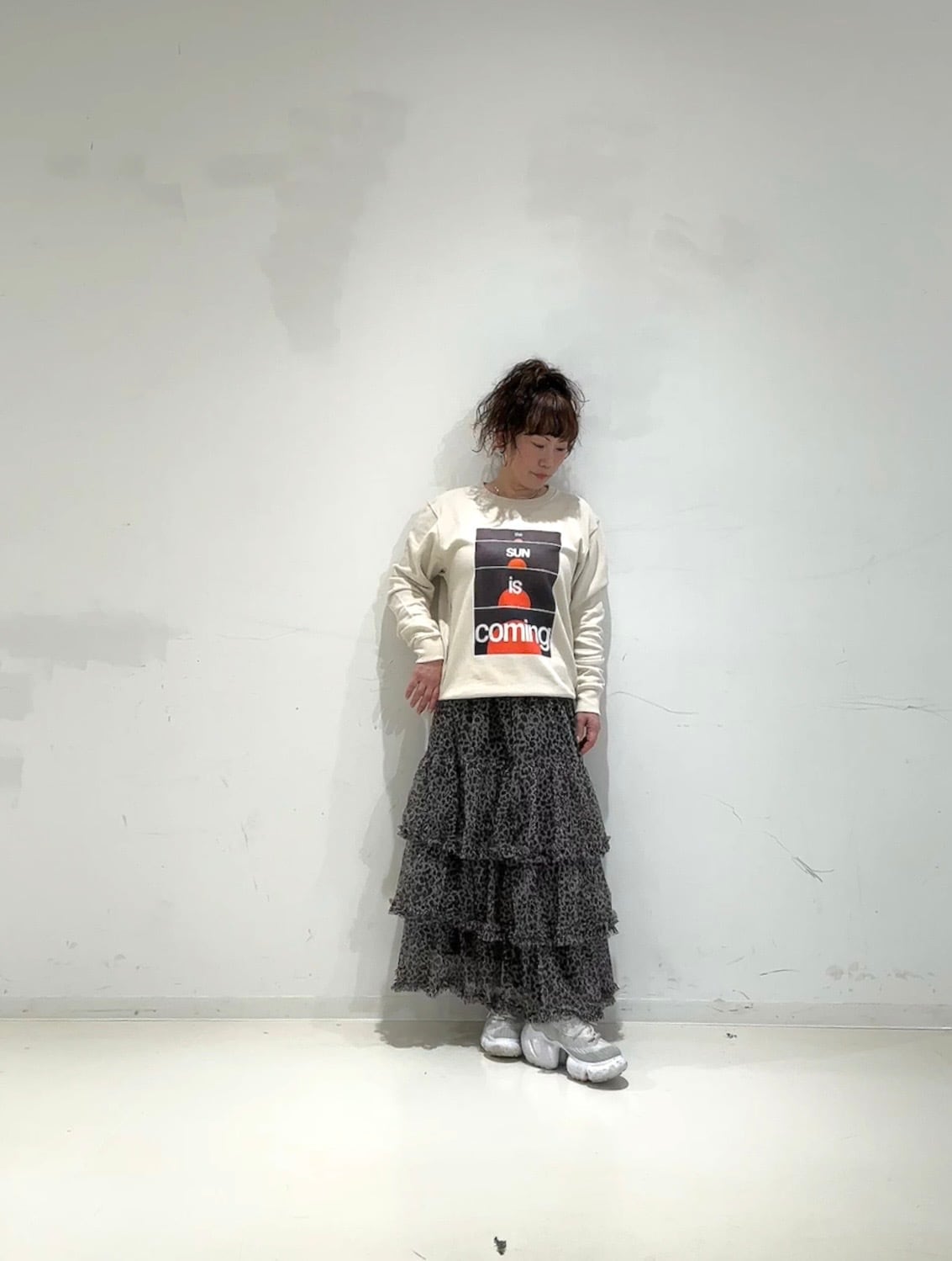 軽やかな素材感とボリュームのあるティアードデザインが魅力のロングスカート。