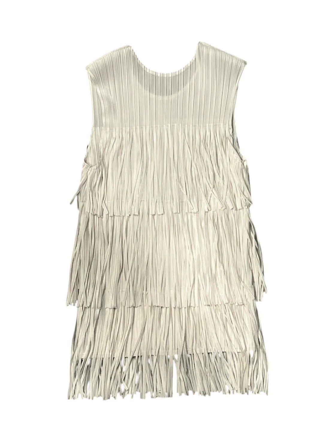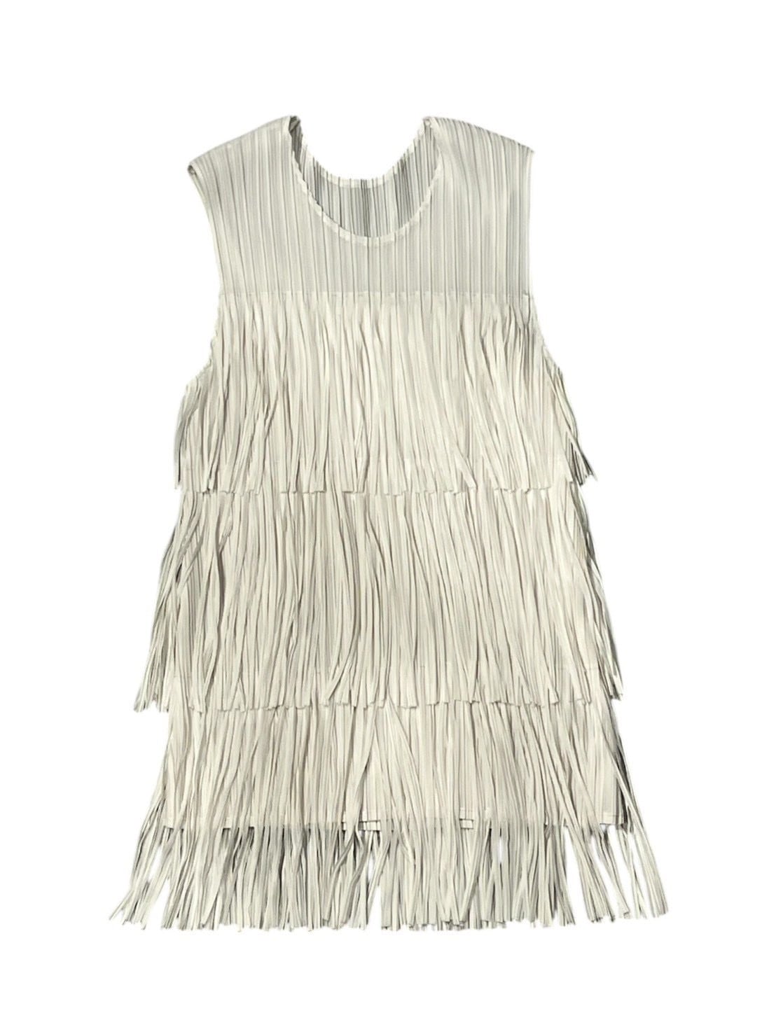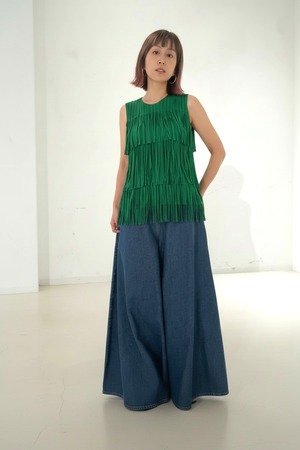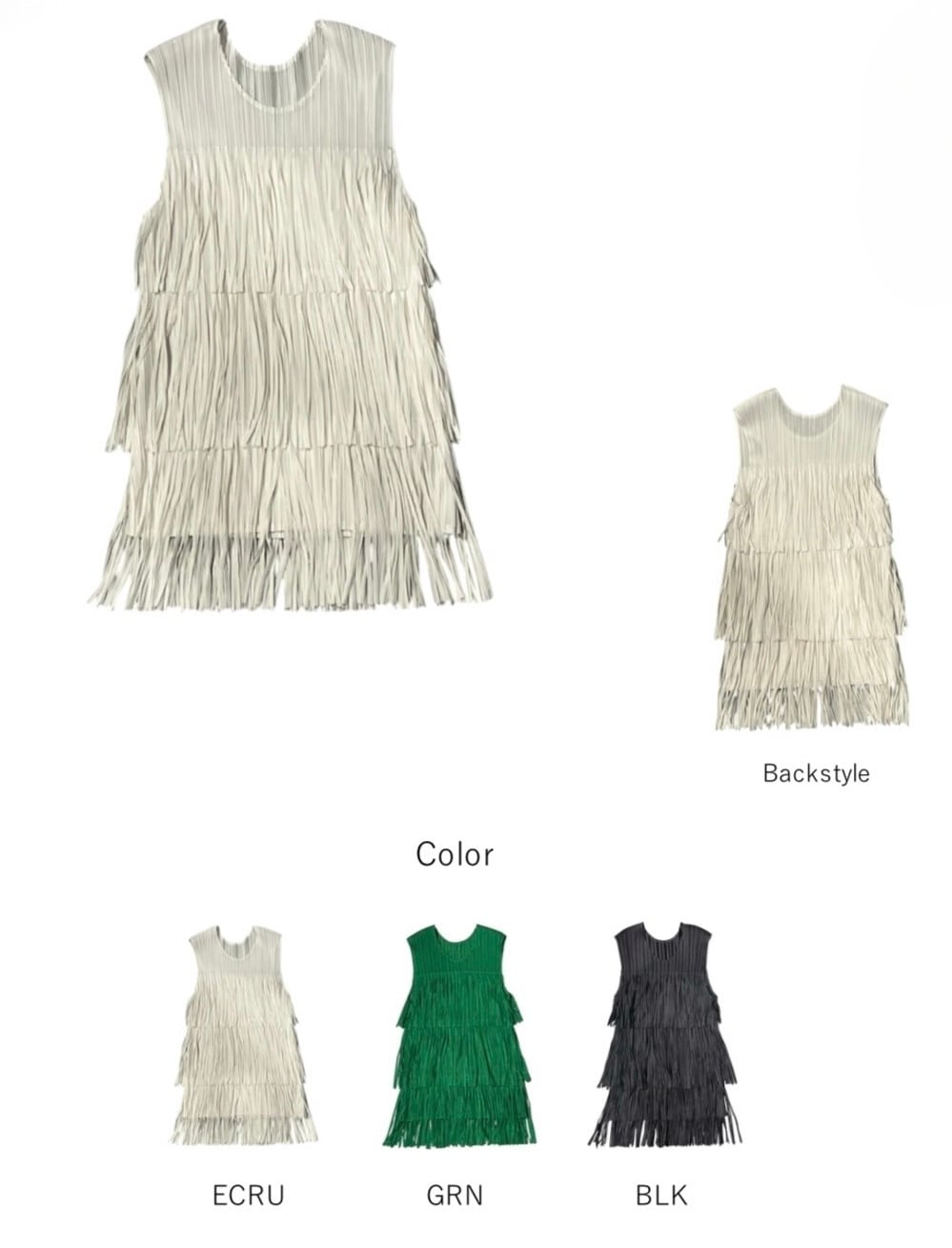 段になったフリンジデザインが動きのあるシルエットを作り、シンプルなボトムに合わせるだけでコーディネートが華やかに仕上がります。