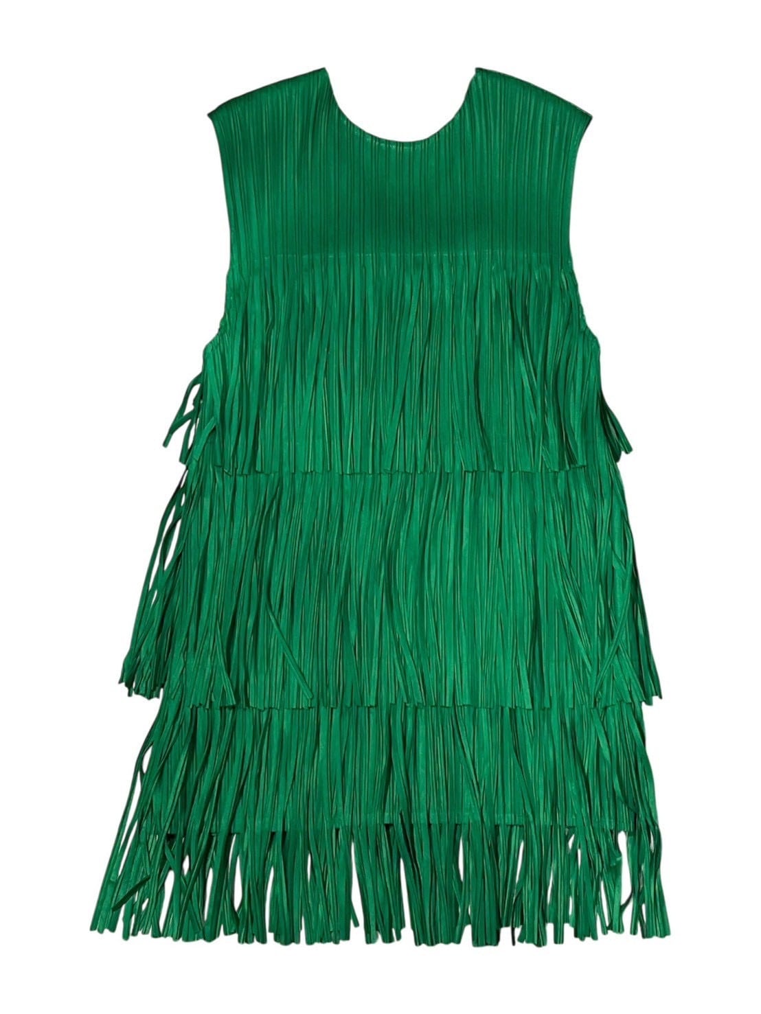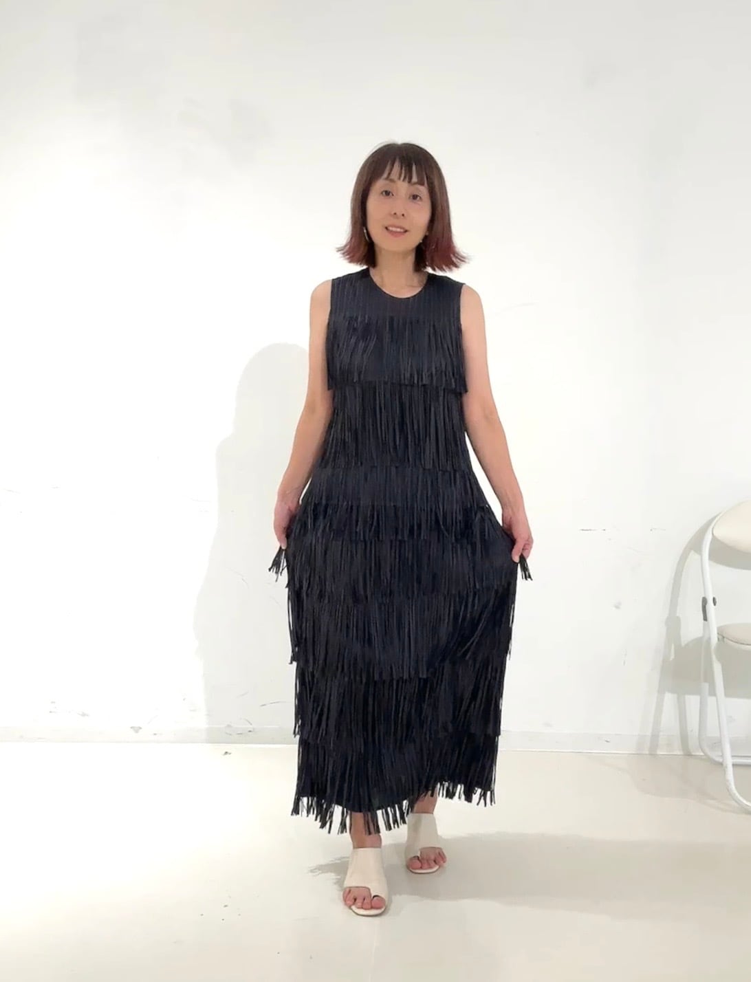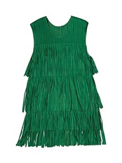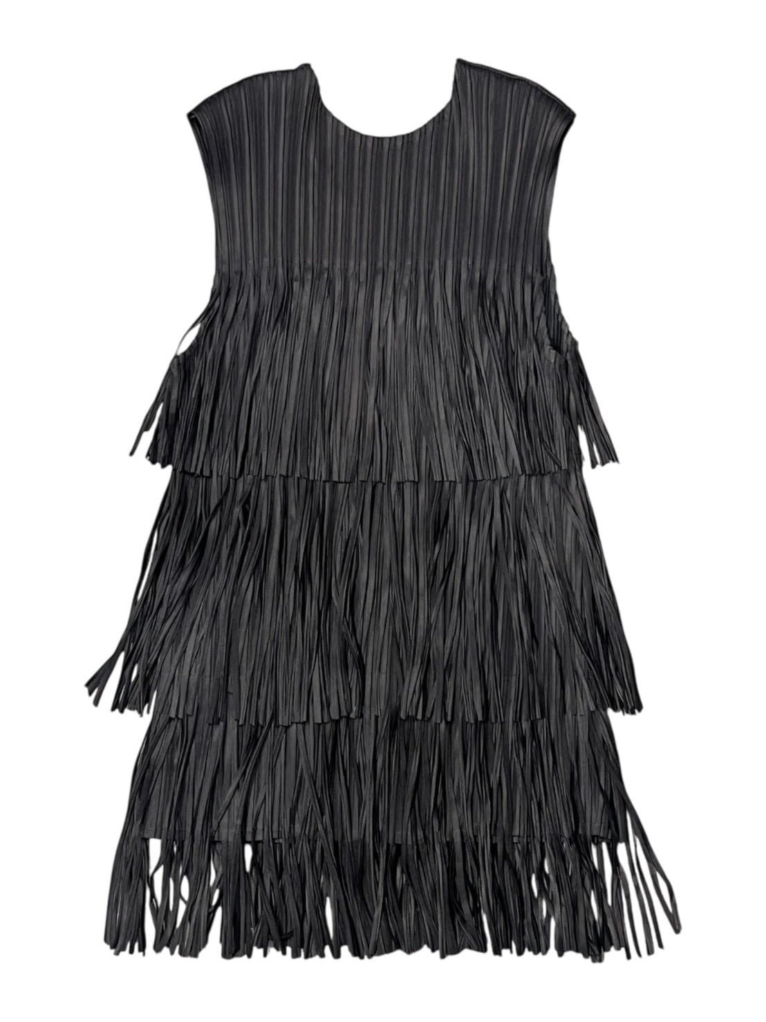 段になったフリンジデザインが動きのあるシルエットを作り、シンプルなボトムに合わせるだけでコーディネートが華やかに仕上がります。