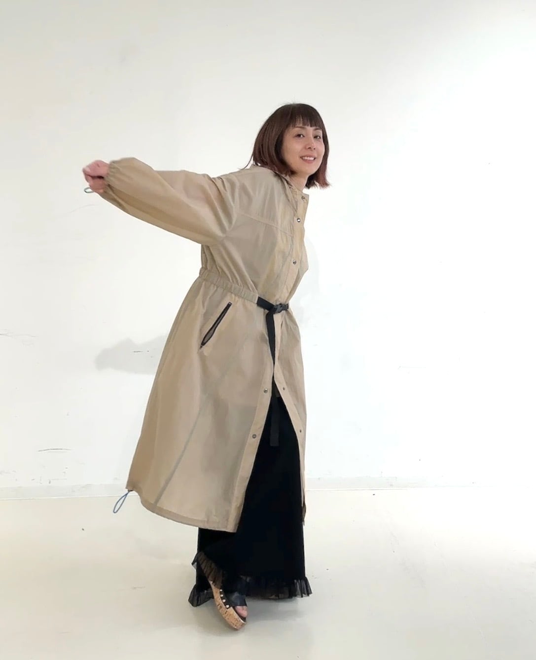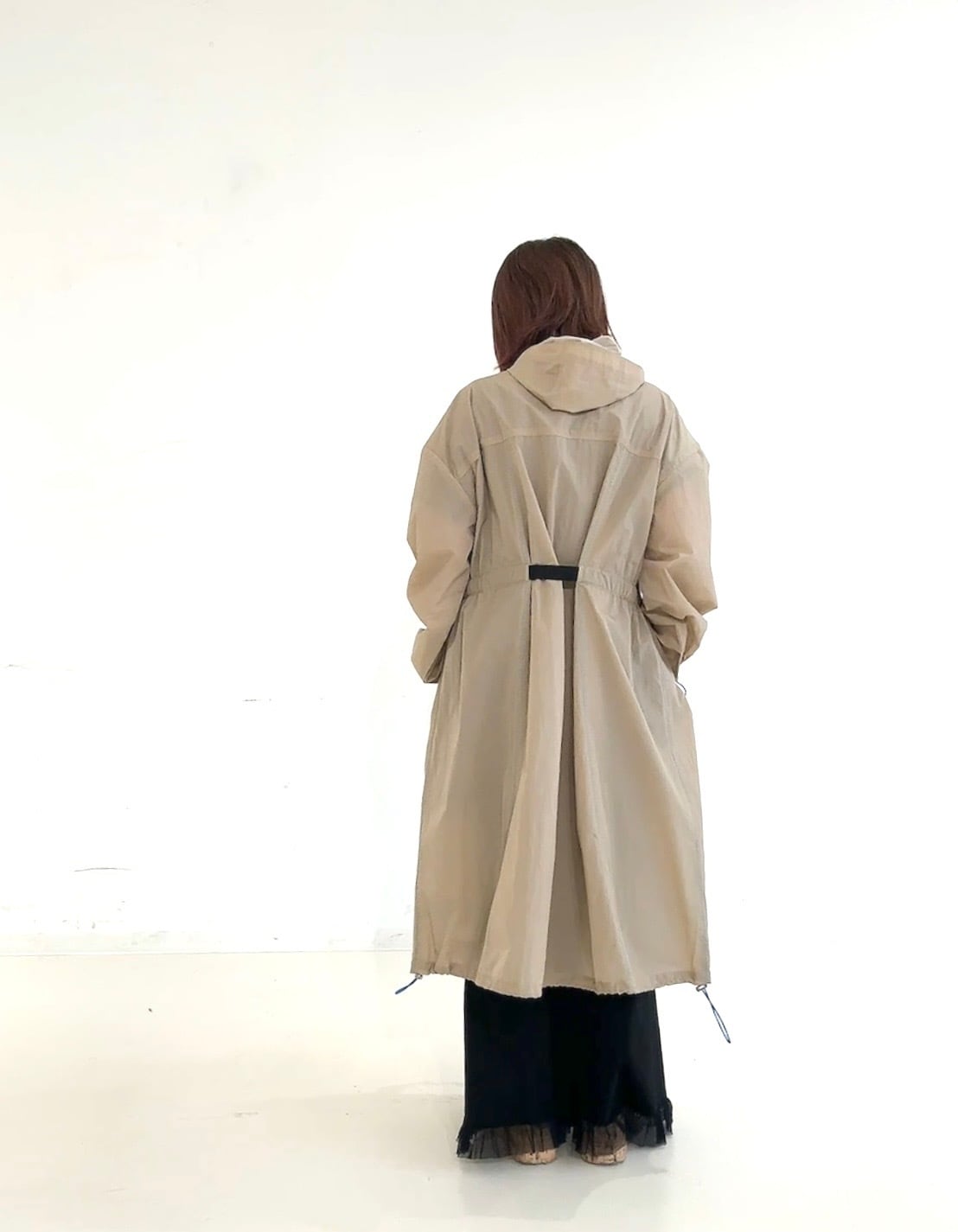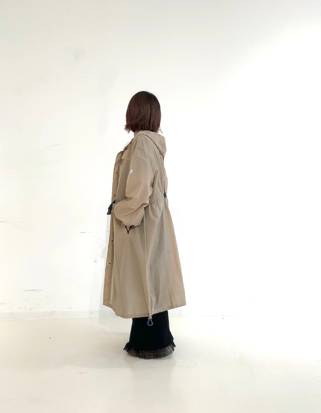 裾のドロストでシルエットアレンジもでき、パンツ・スカート・ワンピースなど幅広いスタイリングにマッチします。