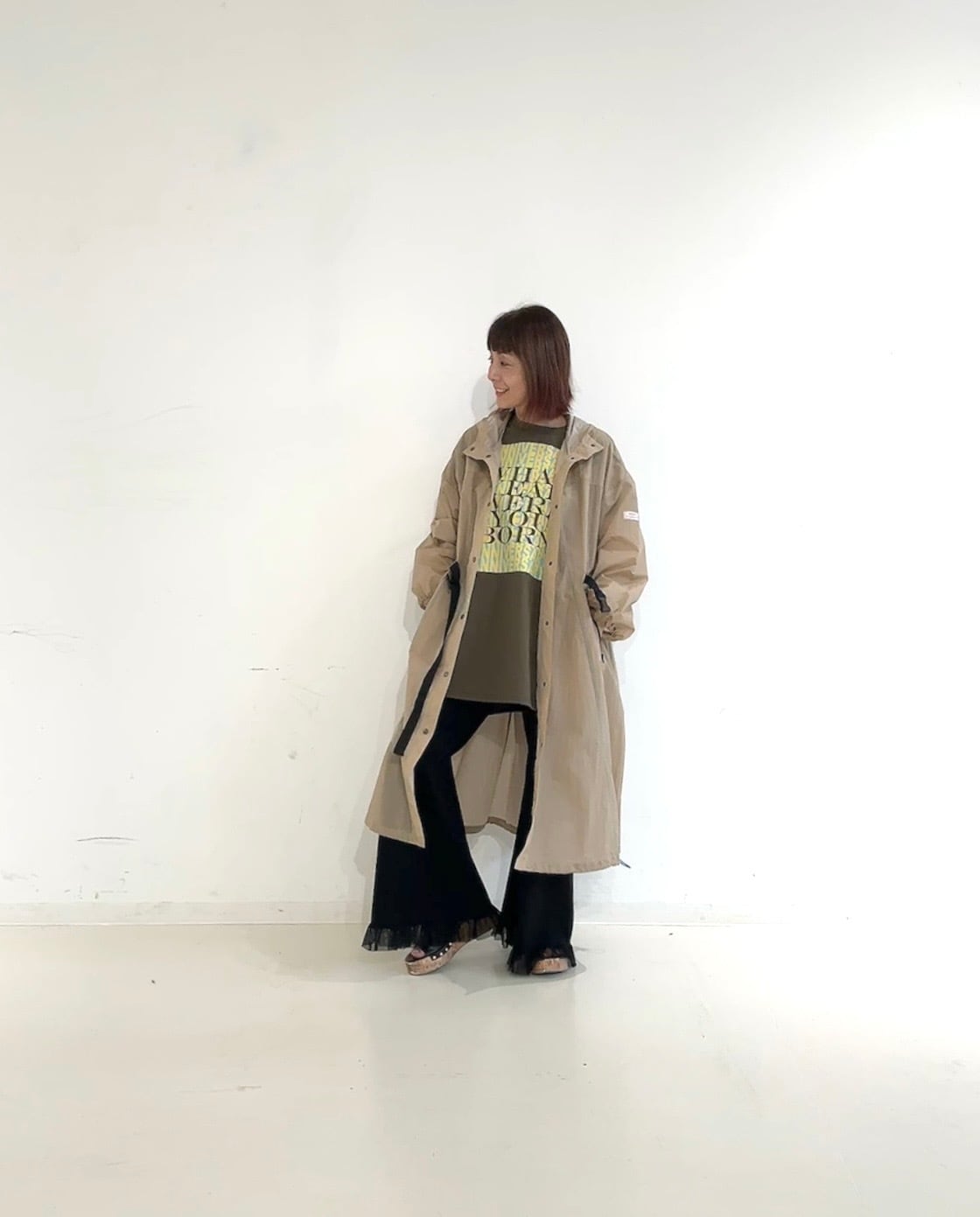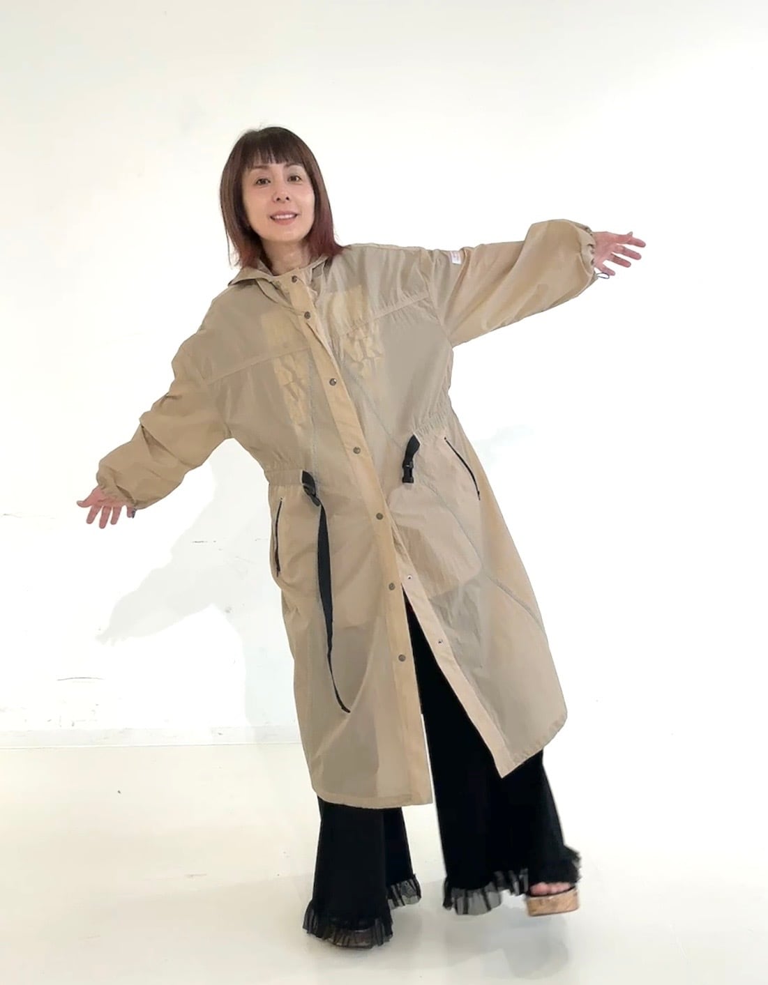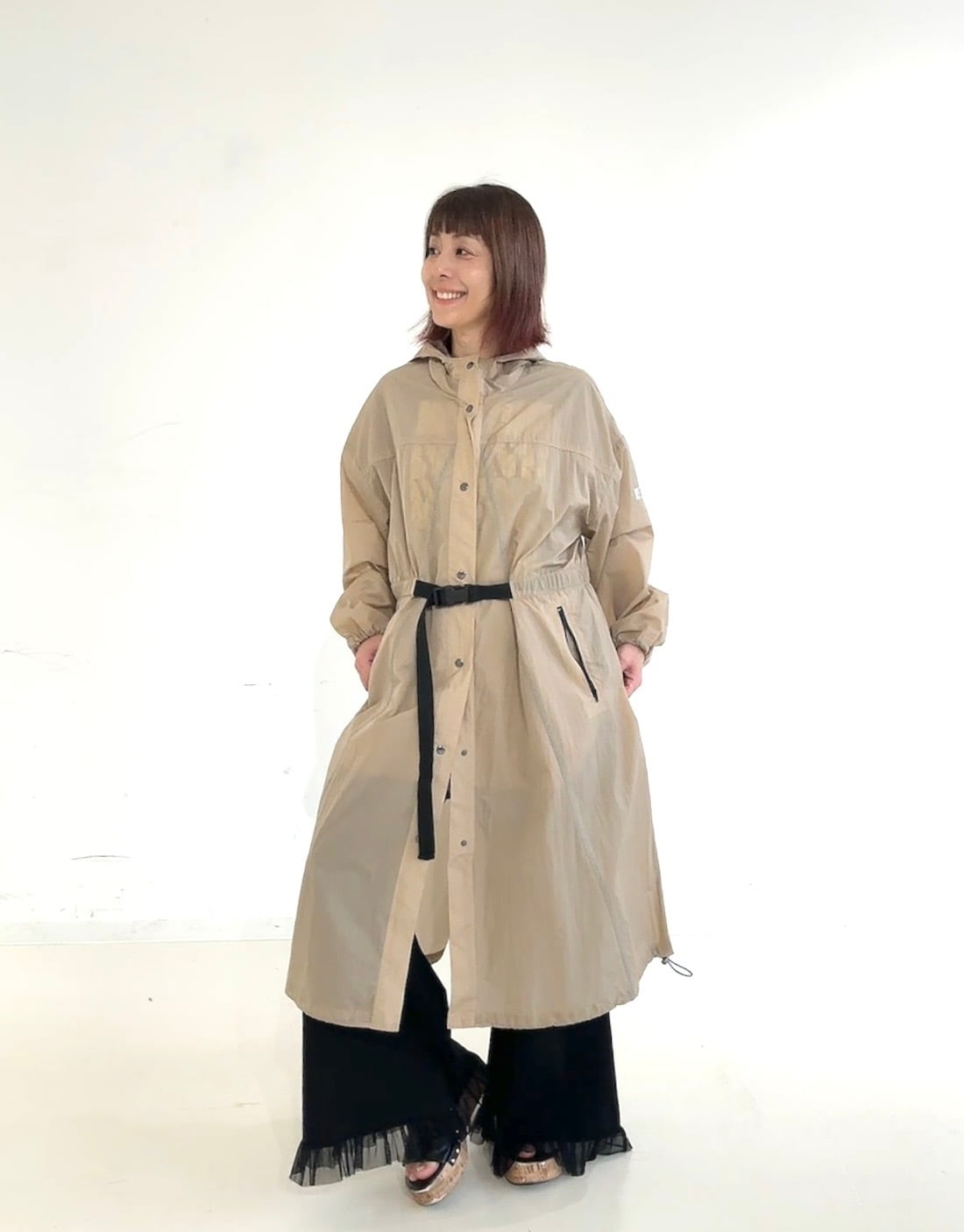 裾のドロストでシルエットアレンジもでき、パンツ・スカート・ワンピースなど幅広いスタイリングにマッチします。