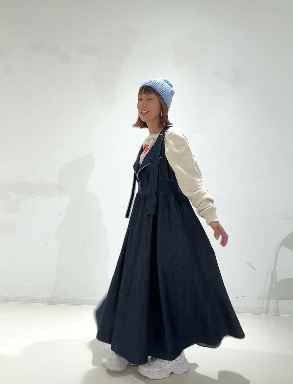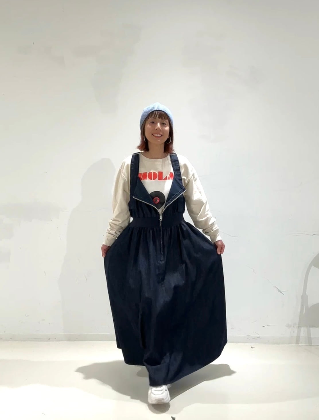 デニムフレアスカート。