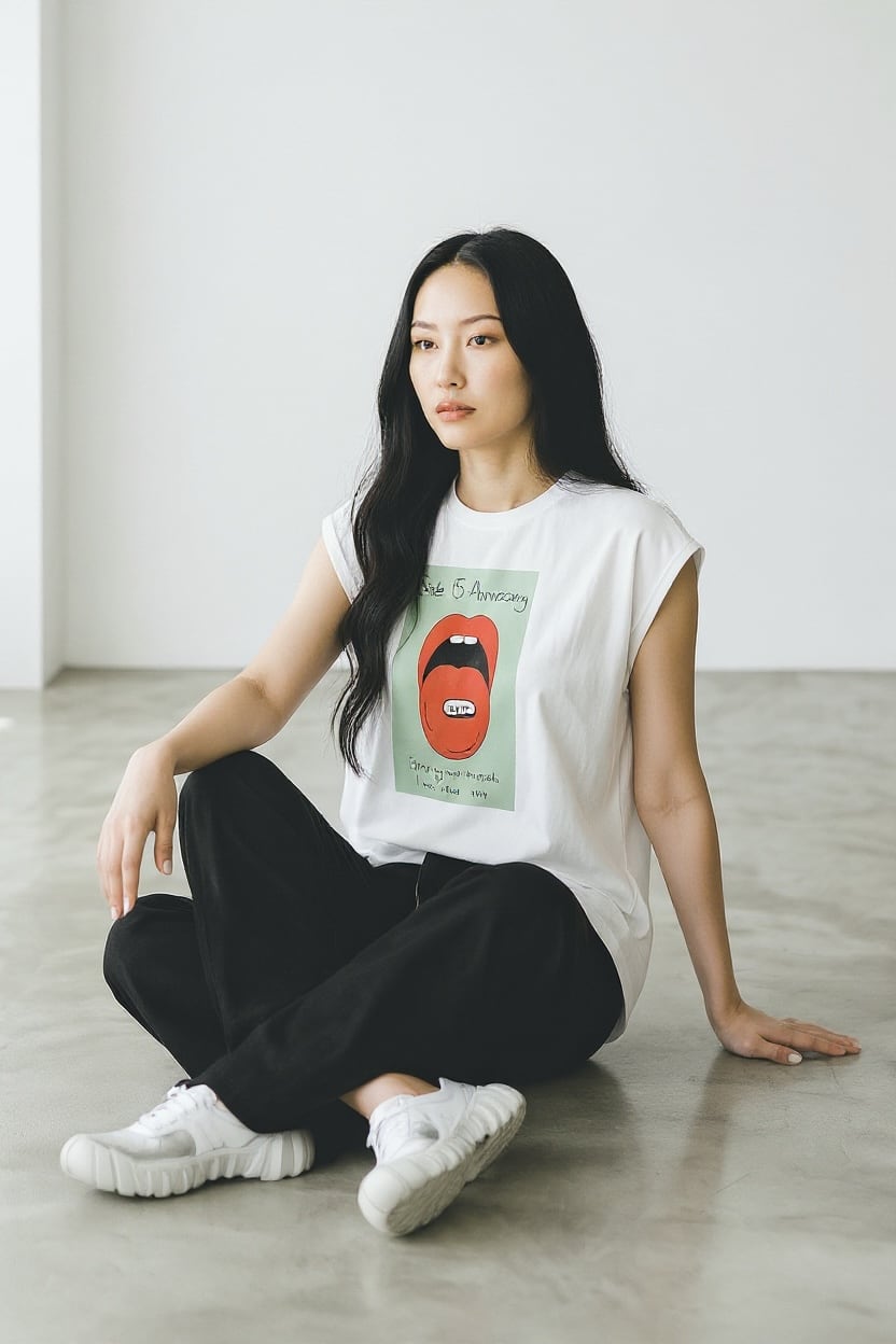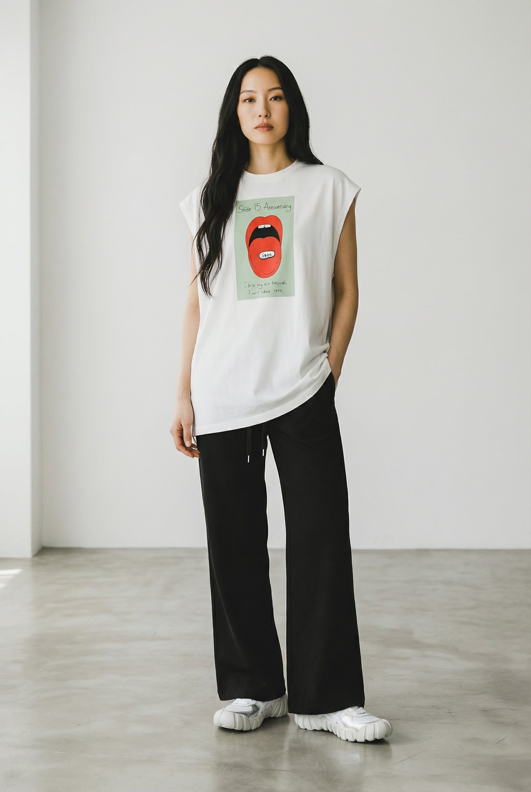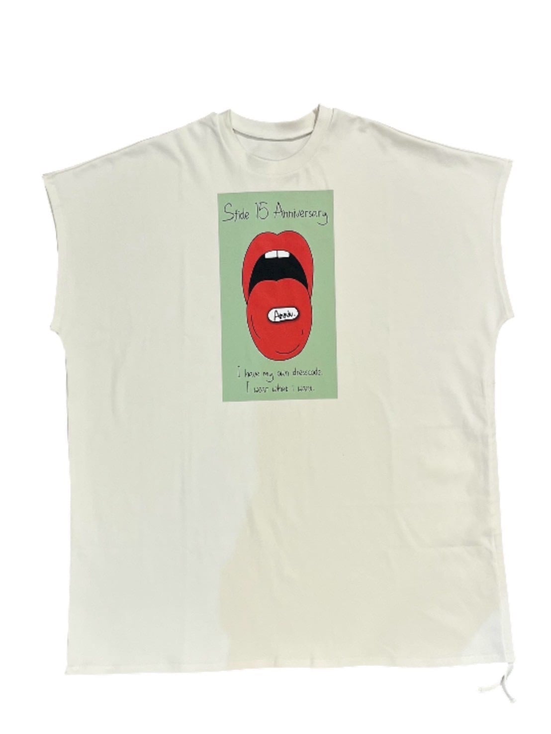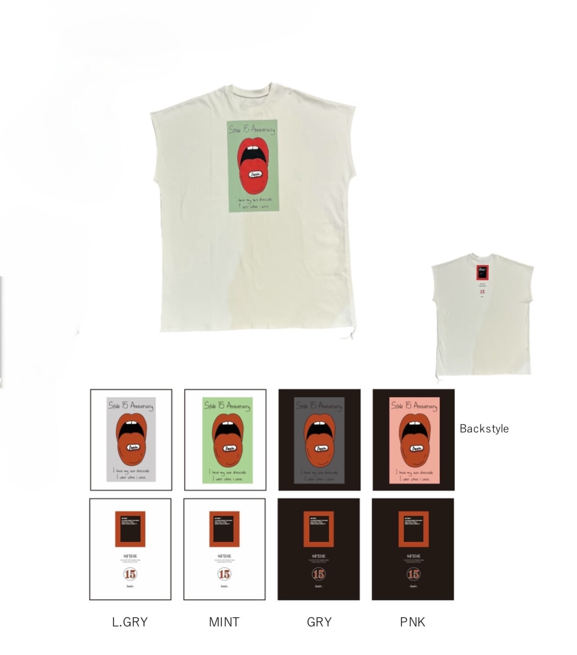 フロントにはインパクトのあるグラフィックプリントを大胆に配置。ポップでエッジの効いたデザインが、コーディネートの主役になる一枚です。バックスタイルには15周年ロゴをあしらい、特別感のある仕上がりに。